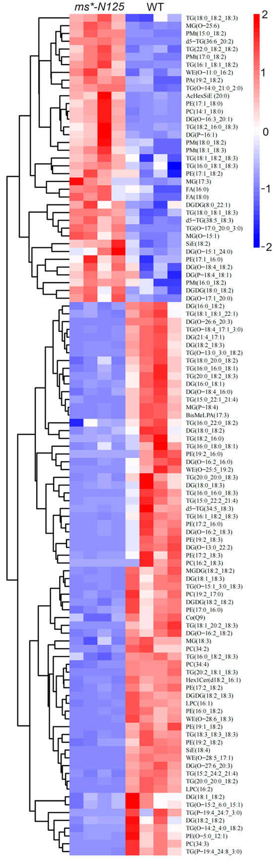 2.6. The Down and Up-Regulation of Lipids in ms*-N125 from Hierarchical Clustering