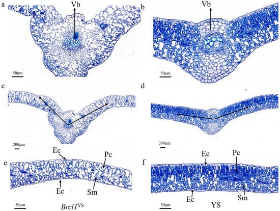 2.2. Genetic Analysis of Curled Leaf in Mutant Brcl1YS