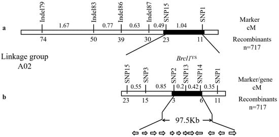 - Huang, C.W.; Yang, M.; Shao, D.L.; Wang, Y.M.; Wan, S.B.; He, J.B.; Meng, Z.Q.; Guan, R.Z. Fine mapping of the BnUC2 locus related to leaf up-curling and plant semi-dwarfing in Brassica napus. BMC Genom. 2020, 21, 530. [Google Scholar] [CrossRef] [PubMed]