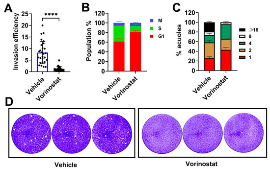 2.2. Vorinostat Impaired the Lytic Cycle of T. gondii In Vitro