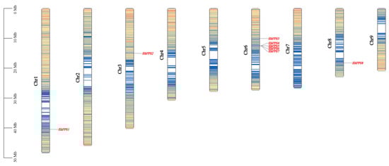 2.2. Chromosomal Location and Gene Duplication Analysis of EhFPS
