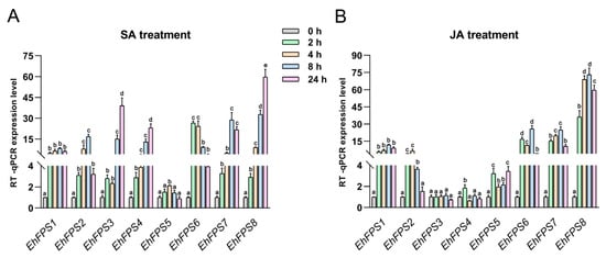 2.7. EhFPS Genes Responds to Exogenous SA and JA Signals