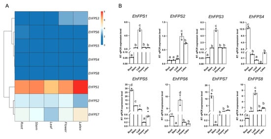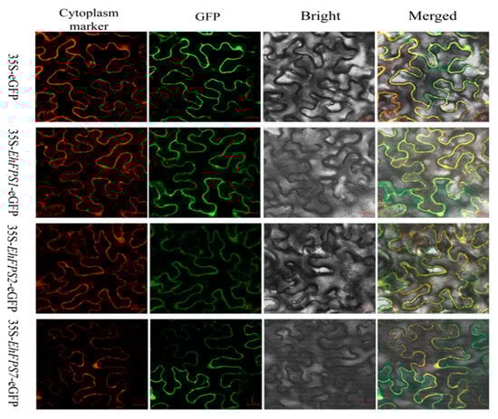 2.9. Subcellular Localization of EhFPS1, EhFPS2, and EhFPS7