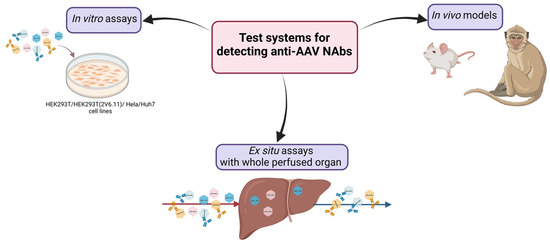 The NAb titer to AAVs is one of the most important criteria used for excluding patients for clinical trials and gene therapy treatment. Most clinical trials use in vitro assays to test NAb levels in patients’ sera, because they are easy to set up and give consistent results [42].