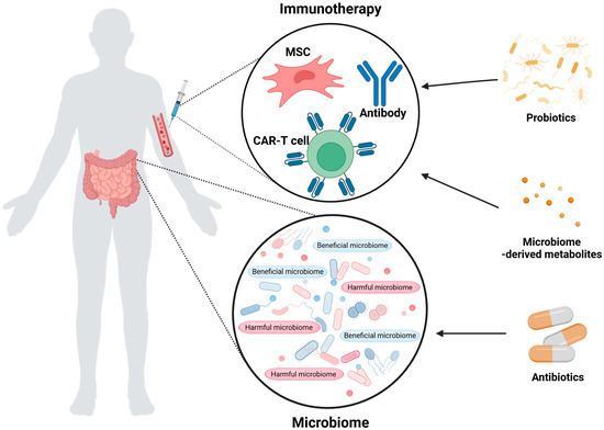 Kim, P.; Joe, S.; Kim, H.; Jeong, H.; Park, S.; Song, J.; Kim, W.; Lee, Y.G. Hidden Partner of Immunity: Microbiome as an Innovative Companion in Immunotherapy. Int. J. Mol. Sci. 2025, 26, 856. https://doi.org/10.3390/ijms26020856