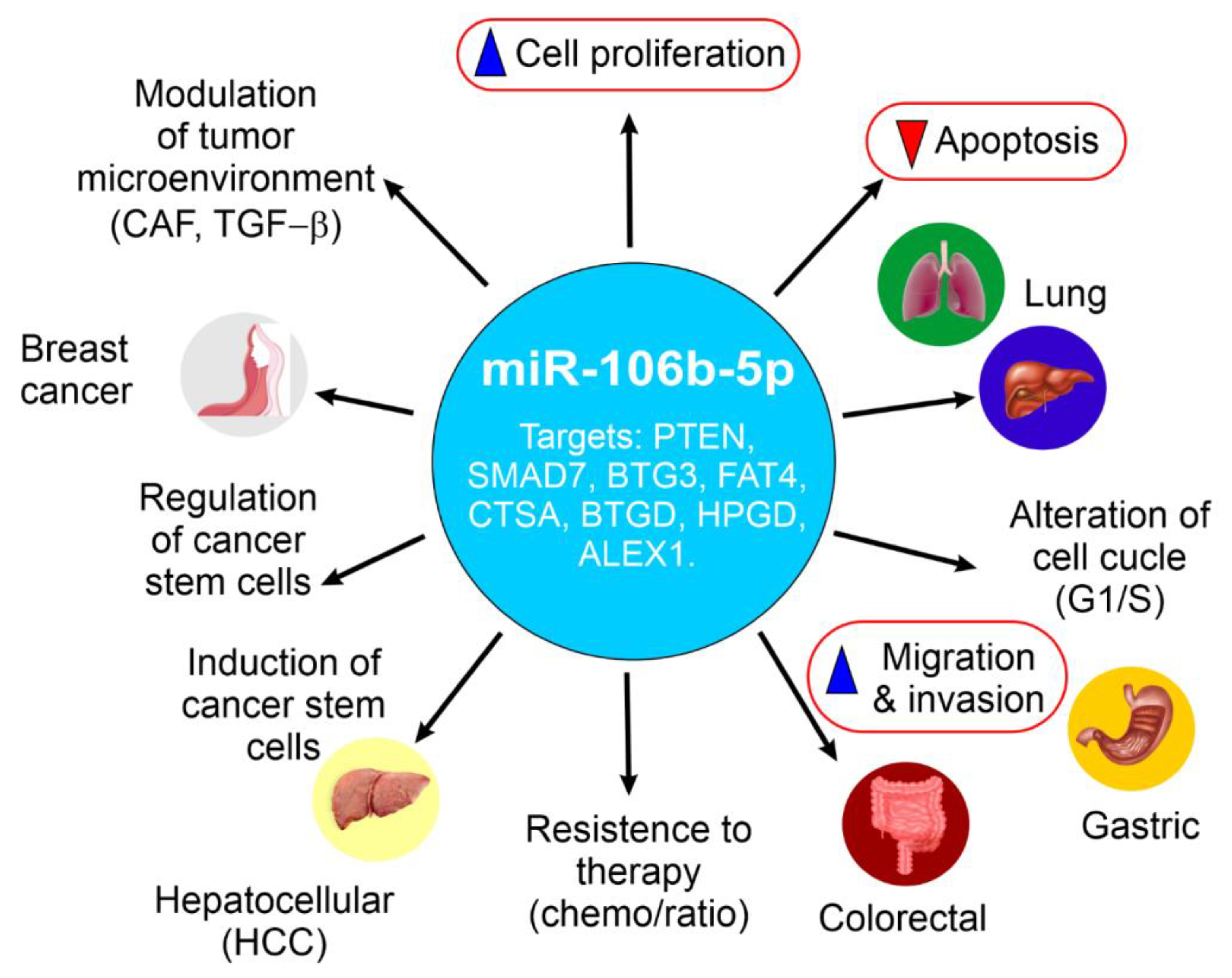 2. Elevated miR-106b-5p Expression and Tumorigenic Roles in Specific Cancers