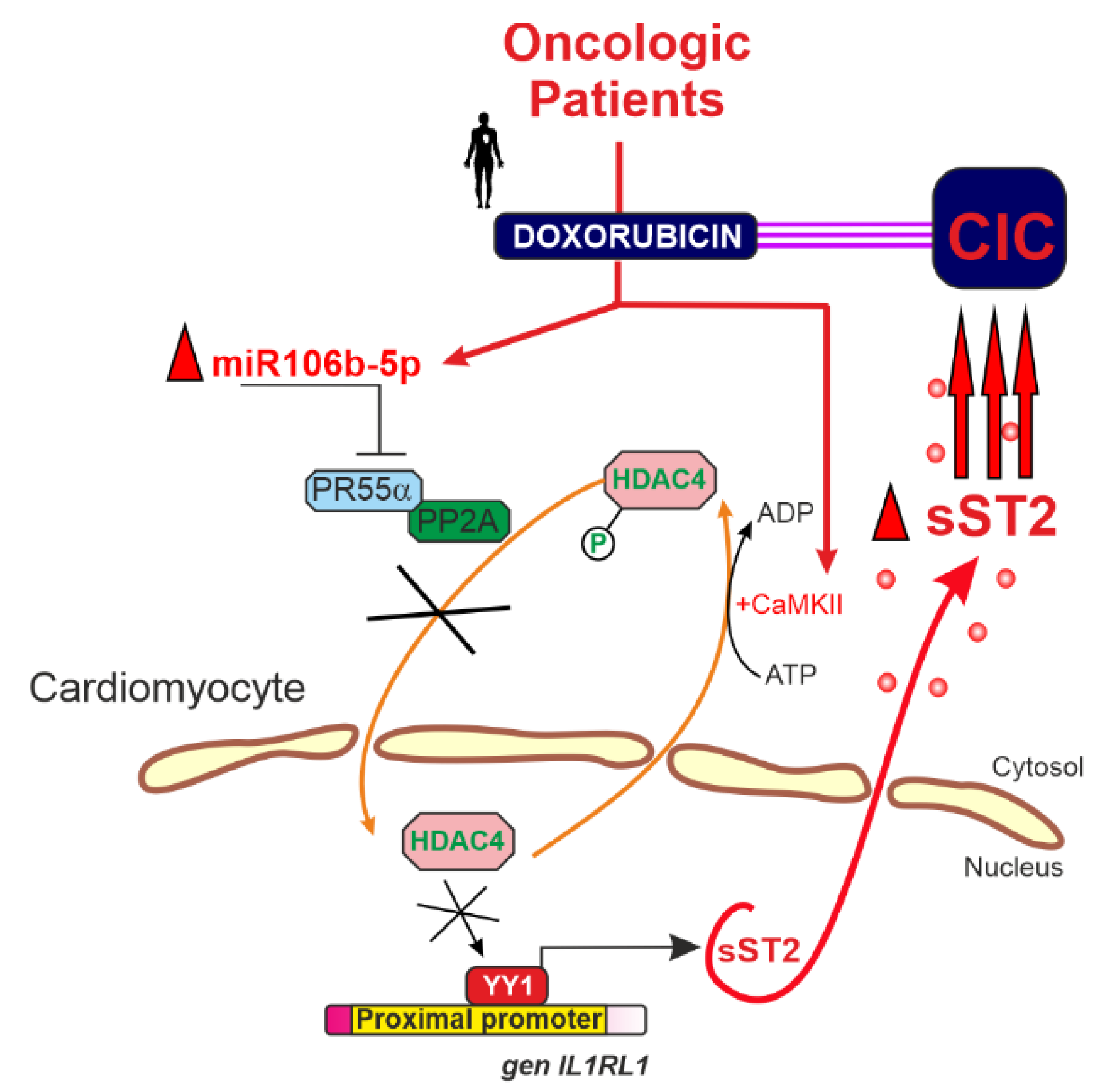 - Lax, A.; Soler, F.; Fernandez del Palacio, M.J.; Pascual-Oliver, S.; Ballester, M.R.; Fuster, J.J.; Pascual-Figal, D.; Asensio-Lopez, M. del C. Silencing of MicroRNA-106b-5p Prevents Doxorubicin-Mediated Cardiotoxicity Through Modulation of the PR55α/YY1/SST2 Signaling Axis. Mol. Ther. Nucleic Acids 2023, 32, 704–720. [Google Scholar] [CrossRef] [PubMed]