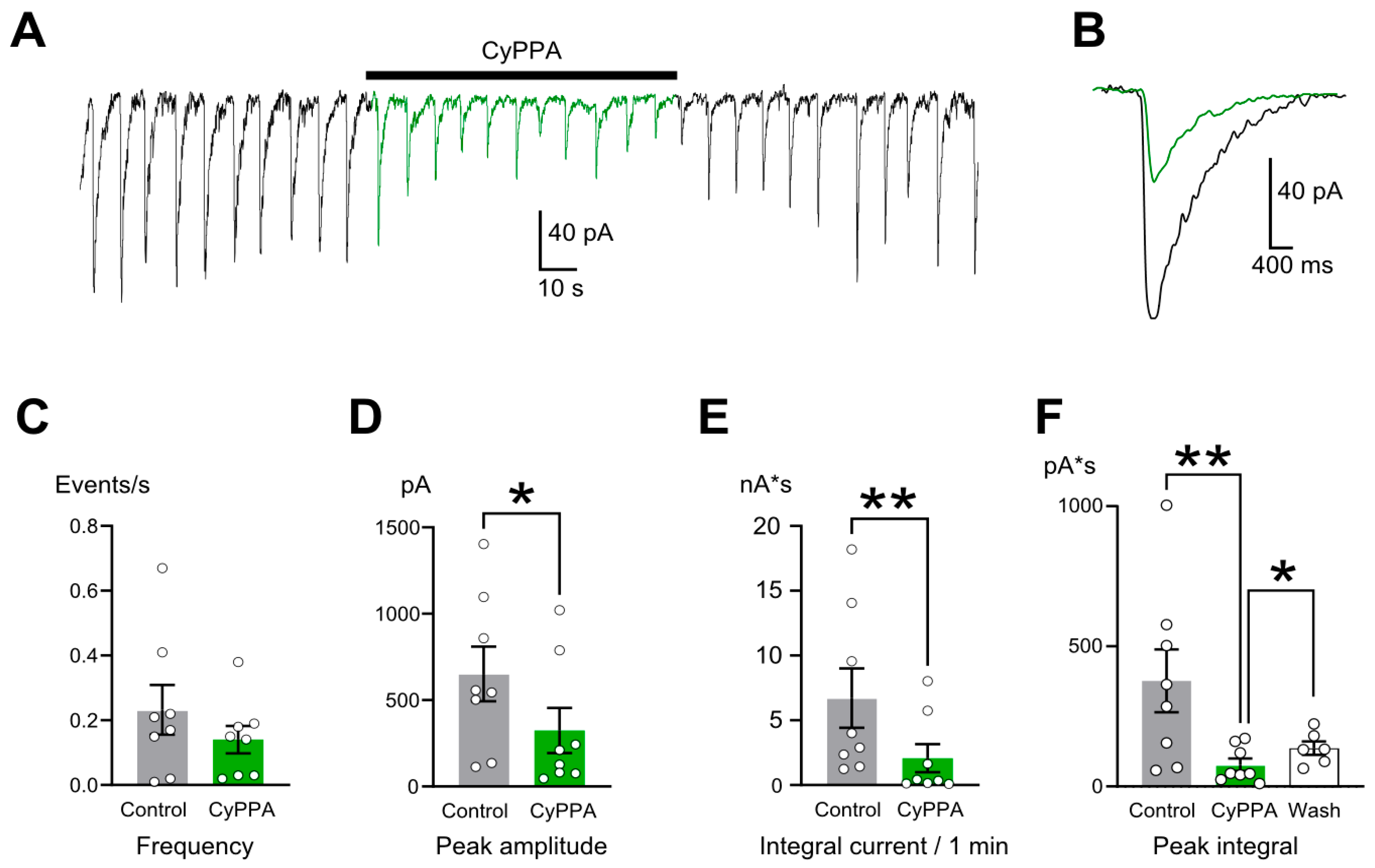 4.2. Recording of Postsynaptic Currents and Data Processing