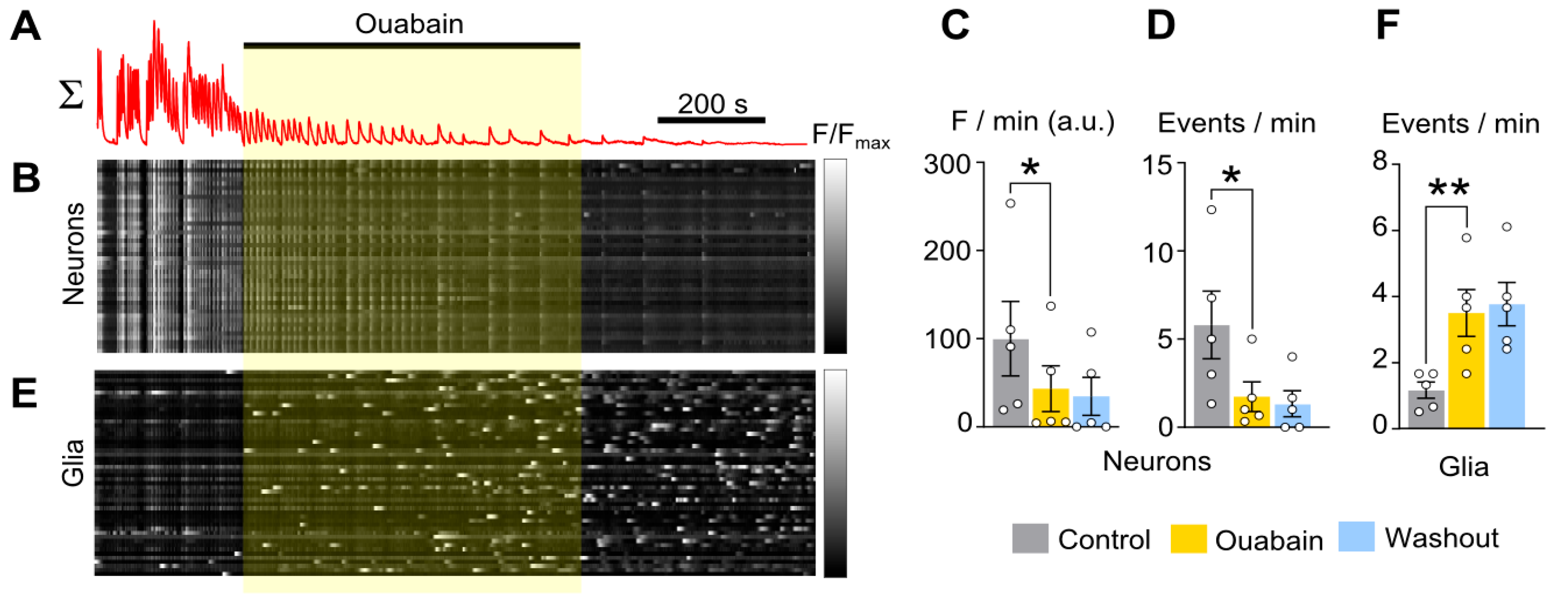 | Ouabain 1 nM | 100 ± 42 (n = 5) | 43 ± 26 (n = 5) * | 34 ± 21 (n = 5) | 5.8 ± 1.9 (n = 5) | 1.7 ± 0.8 (n = 5) * | 1.3 ± 0.7 (n = 5) |
