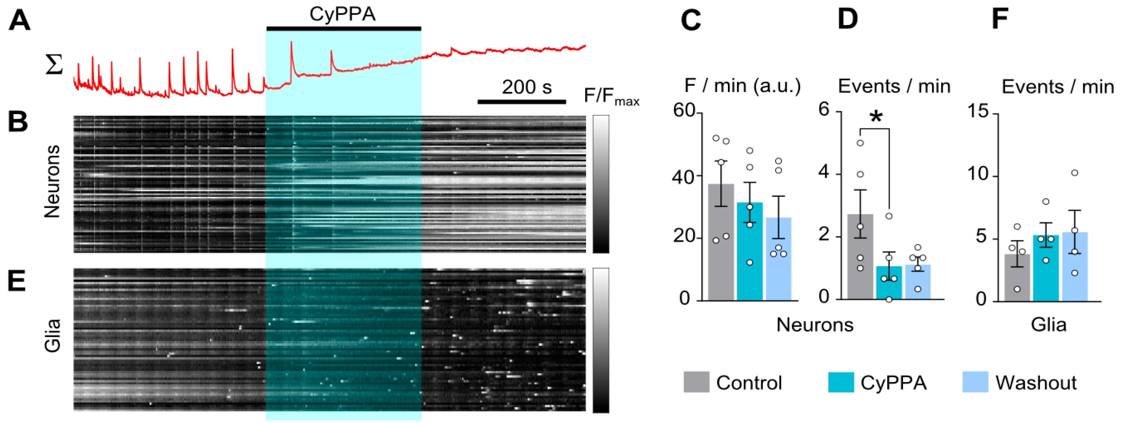 | CyPPA 10 µM | 37 ± 7.2 (n = 5) | 31 ± 6.4 (n = 5) | 27 ± 6.7 (n = 5) | 2.7 ± 0.8 (n = 5) | 1.0 ± 0.45 (n = 5) * | 1.1 ± 0.2 (n = 5) |
