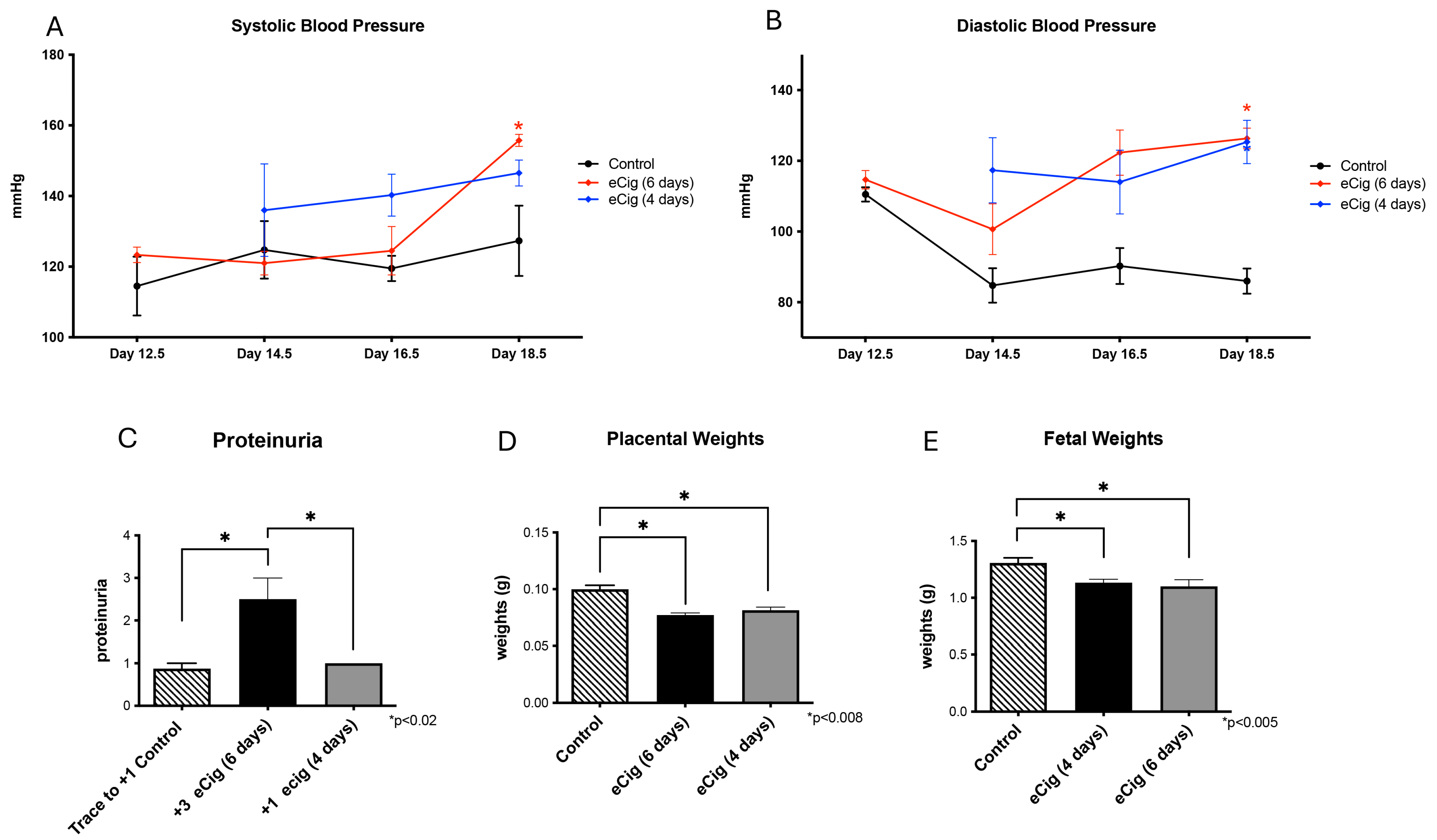 - Juusela, A.; Naik, V.D.; Carabulea, A.L.; Janeski, J.D.; Jiang, H.; Venkatachalam, S.; Ramadoss, J. Altered uterine artery protein signature and function following E-cigarette exposure in pregnancy. Am. J. Transl. Res. 2025, 17, 1662–1678. [Google Scholar] [CrossRef]