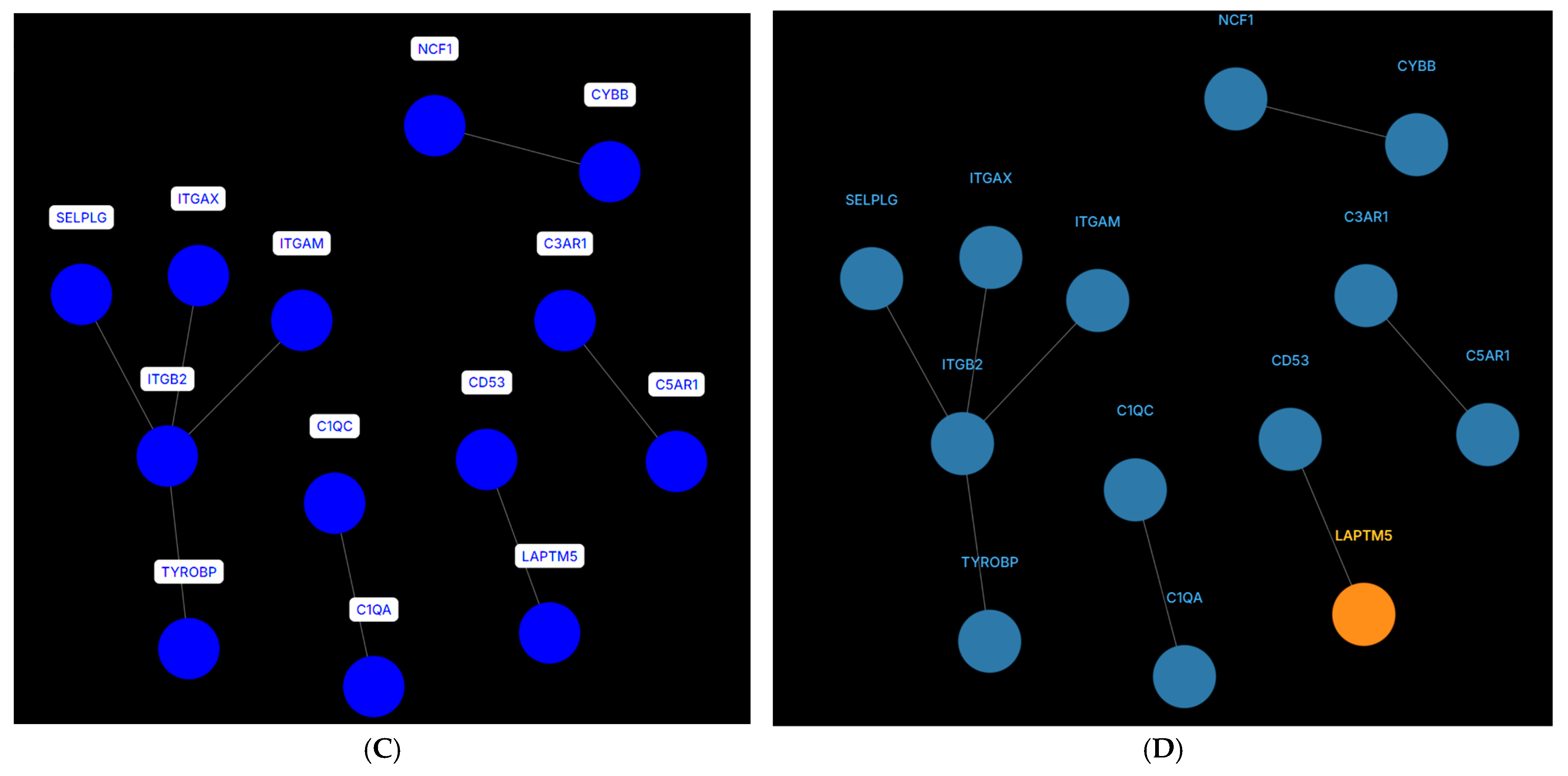 - Milacic, M.; Beavers, D.; Conley, P.; Gong, C.; Gillespie, M.; Griss, J.; Haw, R.; Jassal, B.; Matthews, L.; May, B.; et al. The Reactome Pathway Knowledgebase 2024. Nucleic Acids Res. 2024, 52, D672–D678. [Google Scholar] [CrossRef]