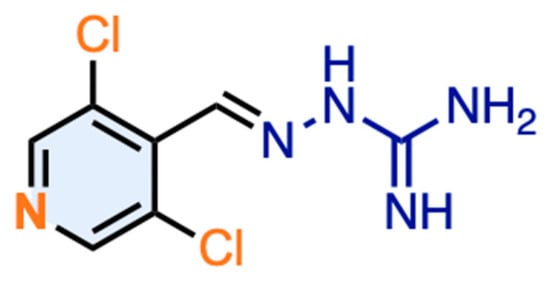 In our previous work, we observed that modifying the substitution pattern on the aromatic ring could substantially influence and reduce binding to α-adrenergic receptors, for example, by introducing additional substituents at the 3,4-positions of the phenyl ring. In addition, we observed that literature examples of structurally related biguanide derivatives, such as BIG12–BIG16, featuring substituents at the 3- and 4-positions of the aromatic ring [,], have been reported to exhibit particularly strong activity toward TAAR1 []. Based on these findings, we incorporated similar modifications into our series by introducing various substituents at the 3- and 4-positions of the aromatic ring while retaining the aminoguanidine moiety as the core structural feature essential for interactions with the Asp residue of TAAR1 (Figure 1).