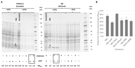 2.2.1. Inducible Expression of HBc-pAzF and Genetic Fusion Variants