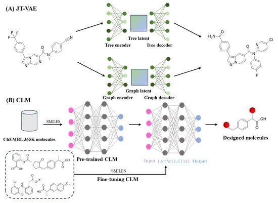 | 21 | CLM | An RNN-based generative model trained on limited molecular data to produce structures containing specified motifs, applied to discover bacterial, plant, and fungal metabolites as potential drug leads [183]. | https://github.com/skinnider/low-data-generative-models (accessed on 20 August 2025) |