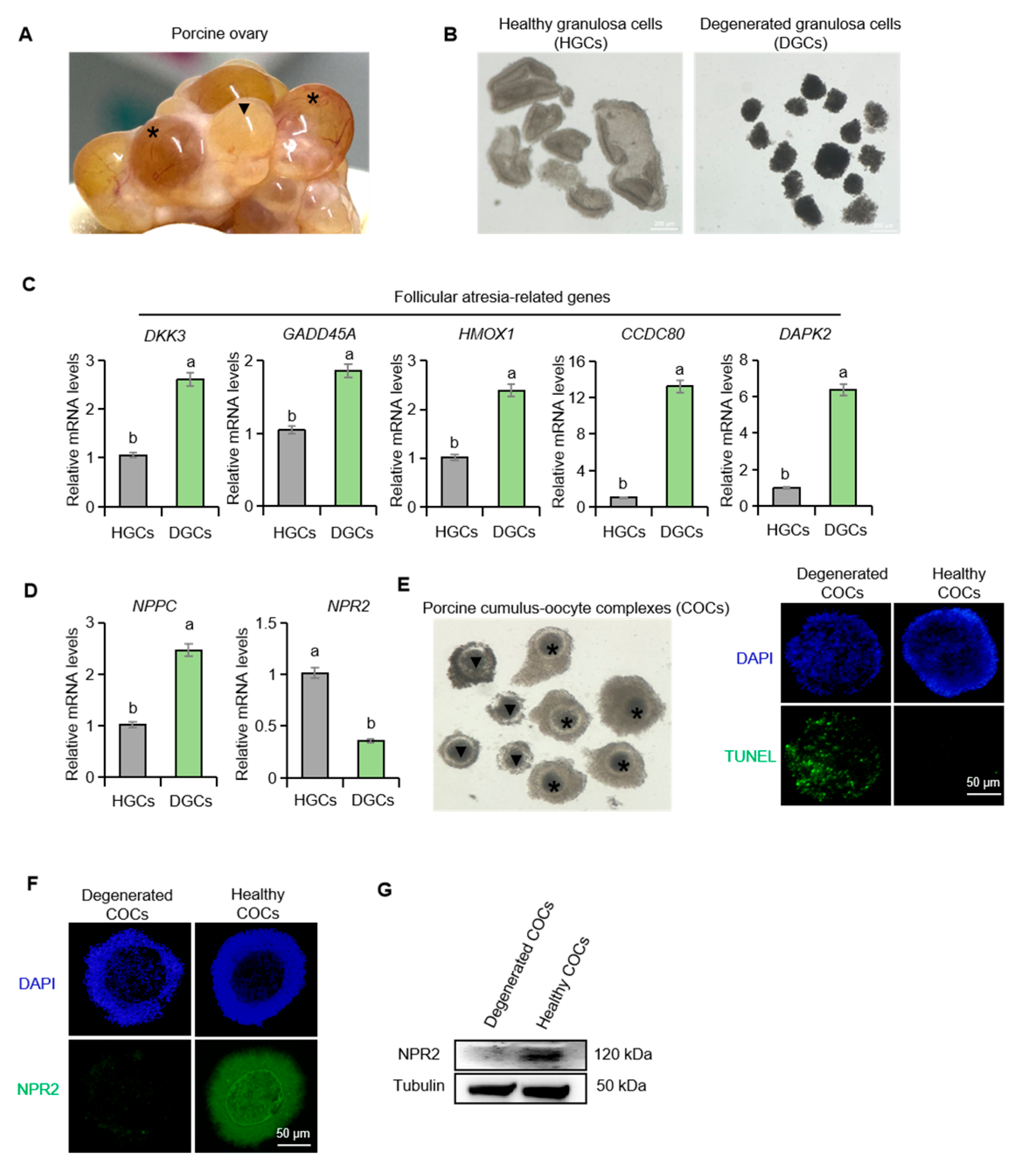 2.1. Differential Expression of NPPC and NPR2 in Healthy and Atretic Porcine Follicles