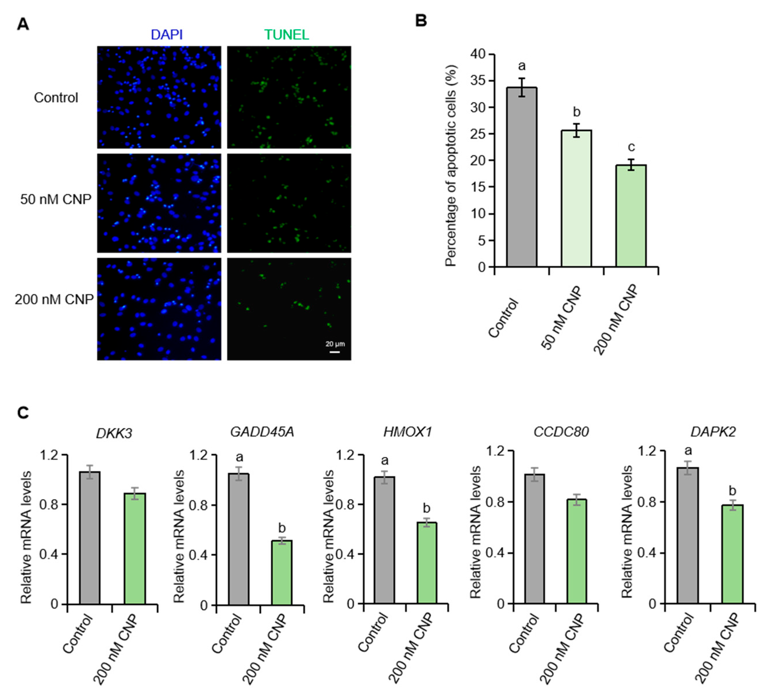 2.2. CNP Suppresses Apoptosis in Porcine Granulosa Cells Cultured In Vitro