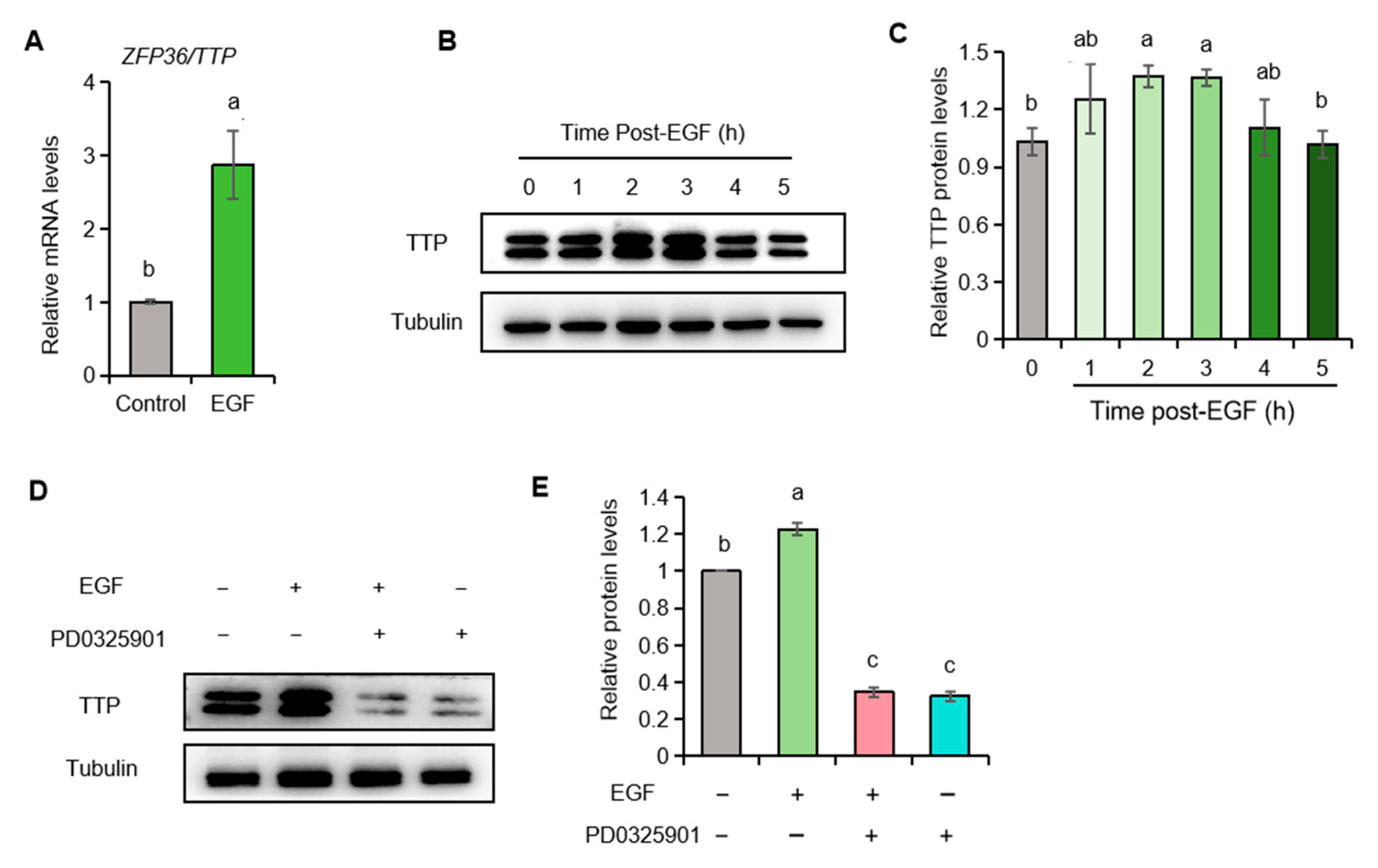 2.6. EGF Promotes ZFP36/TTP Expression in Porcine Granulosa Cells