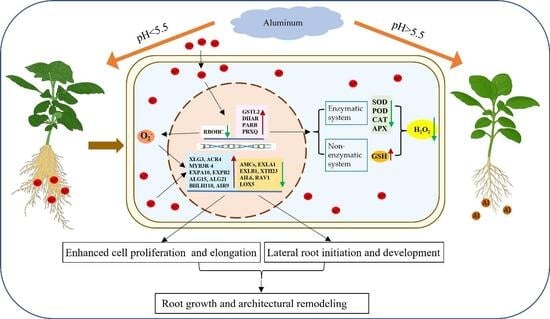 - Ranjan, A.; Sinha, R.; Sharma, T.R.; Pattanayak, A.; Singh, A.K. Alleviating aluminum toxicity in plants: Implications of reactive oxygen species signaling and crosstalk with other signaling pathways. Physiol. Plant 2021, 173, 1765–1784. [Google Scholar] [CrossRef] [PubMed]