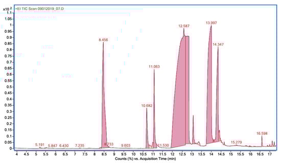 A Shimadzu UFLC XR liquid chromatograph equipped with DAD and MS detectors (LC-MS 2020 Shimadzu, Kyoto, Kyoto Prefecture, Japan) was used to detect the transformation products. A Phenomenex Kinetex C18 column (3 mm × 100 mm, 2.6 μm) (Torrance, CA, USA) was used. The mobile phase consisted of polar component A (water with 0.1% HCOOH) and less polar component B, which was methanol. The following chromatographic conditions were used: flow rate of 0.4 mL·min−1, column temperature of 45 °C, and injection volume of 5 μL. The detected transformation products were analyzed using a 2020 Shimadzu LC-MS system equipped with an electrospray ionization source. The negative ion m/z 138 was selected to monitor SA. In addition, the entire range of 50–750 m/z was scanned in positive and negative ionization to detect the presence of other analytical signals. The operating conditions of the mass spectrometer were as follows: drying gas flow rate (N2) of 1.5 mL·min−1, gas temperature of 400 °C, nebulizer gas pressure of 30 psi, fragmentor voltage of 70 V, and capillary voltage of 4000 V. Details of the chromatographic separation are given in a previous article [].