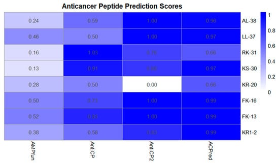 Wattayagorn V, Mansuwan T, Angkanawin K, Sapkaew C, Sinthuvanich C, Watthanasakphuban N, Chumnanpuen P. Virtual Screening of Cathelicidin-Derived Anticancer Peptides and Validation of Their Production in the Probiotic Limosilactobacillus fermentum KUB-D18 Using Genome-Scale Metabolic Modeling and Experimental Approaches. International Journal of Molecular Sciences. 2025; 26(20):10077. https://doi.org/10.3390/ijms262010077