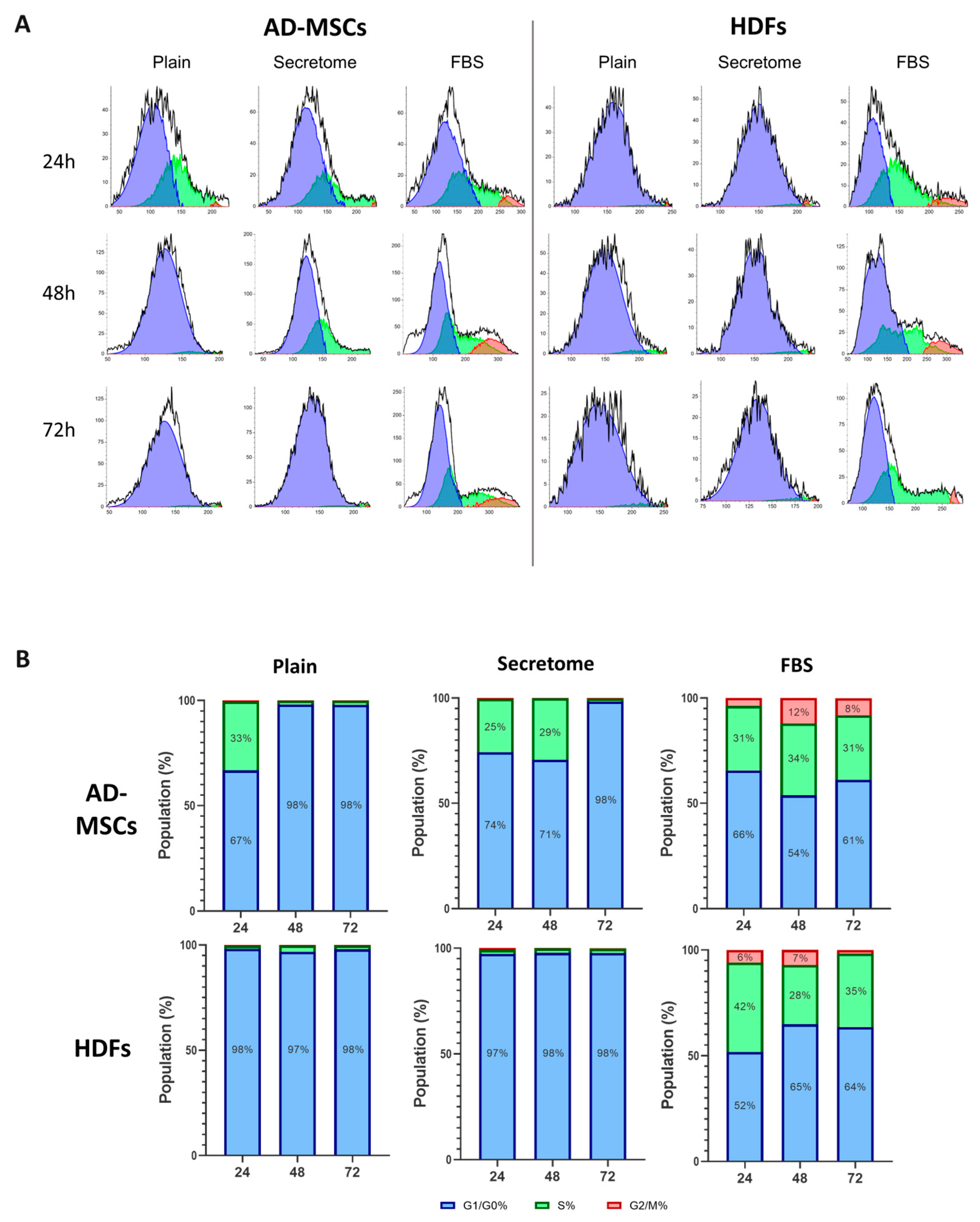 2.3. Impact of Paracrine Signaling from WJ-MSCs on Cell Cycle Progression in Stem Cells and Fibroblasts