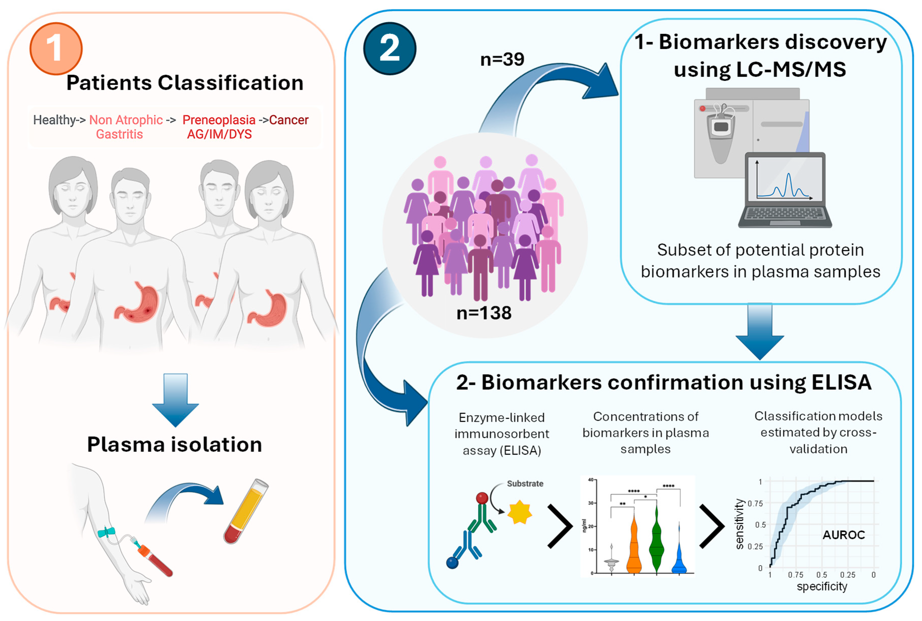 - Bazin, T.; Nozeret, K.; Julié, C.; Lamarque, D.; Touati, E. Protein Biomarkers of Gastric Preneoplasia and Cancer Lesions in Blood: A Comprehensive Review. Cancers 2024, 16, 3019. [Google Scholar] [CrossRef]