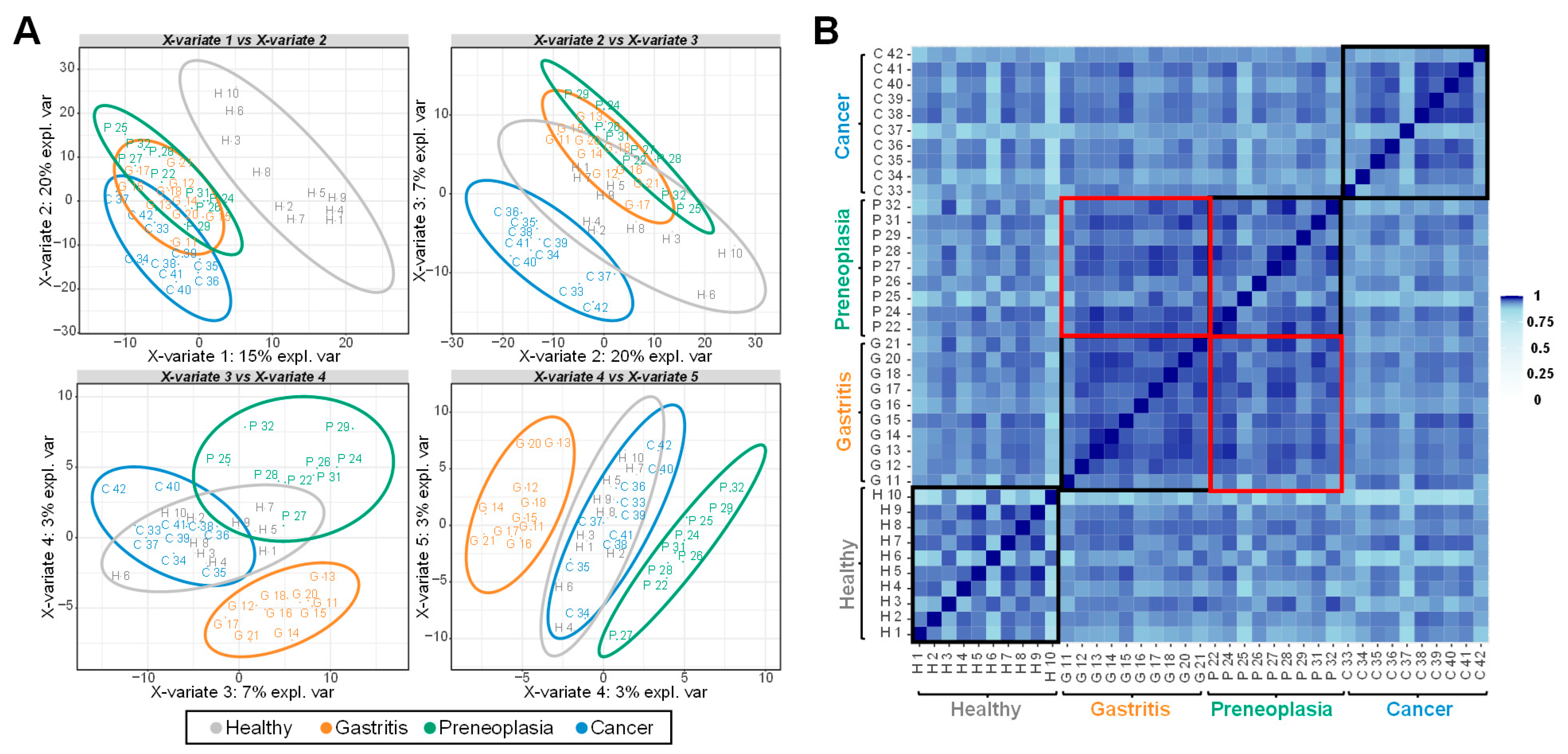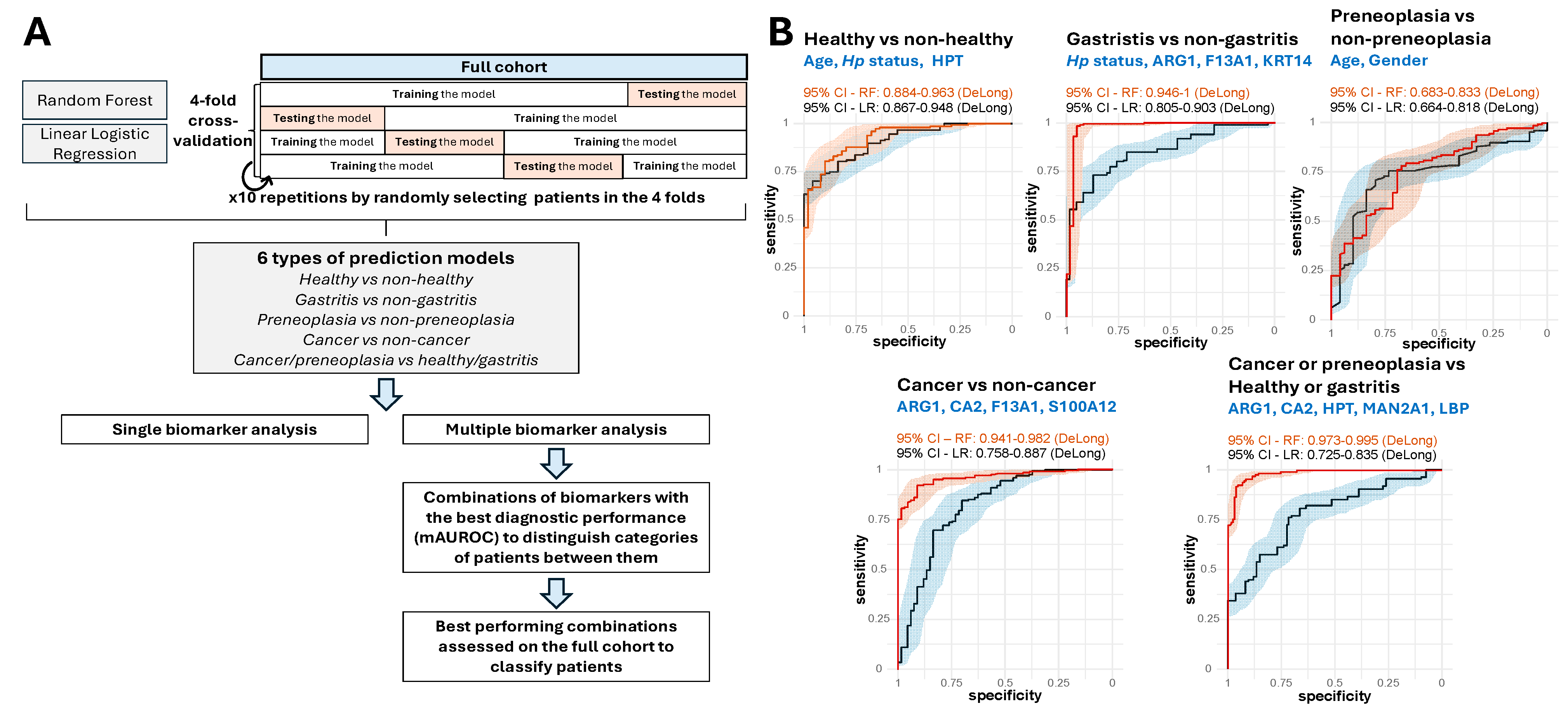 Healthy vs. Non-Healthy | Gastritis vs. Non-Gastritis | Preneoplasia vs. Non-Preneoplasia | Cancer vs. Non-Cancer | Cancer or Preneoplasia vs. Healthy or Gastritis | All Stages | |||||||