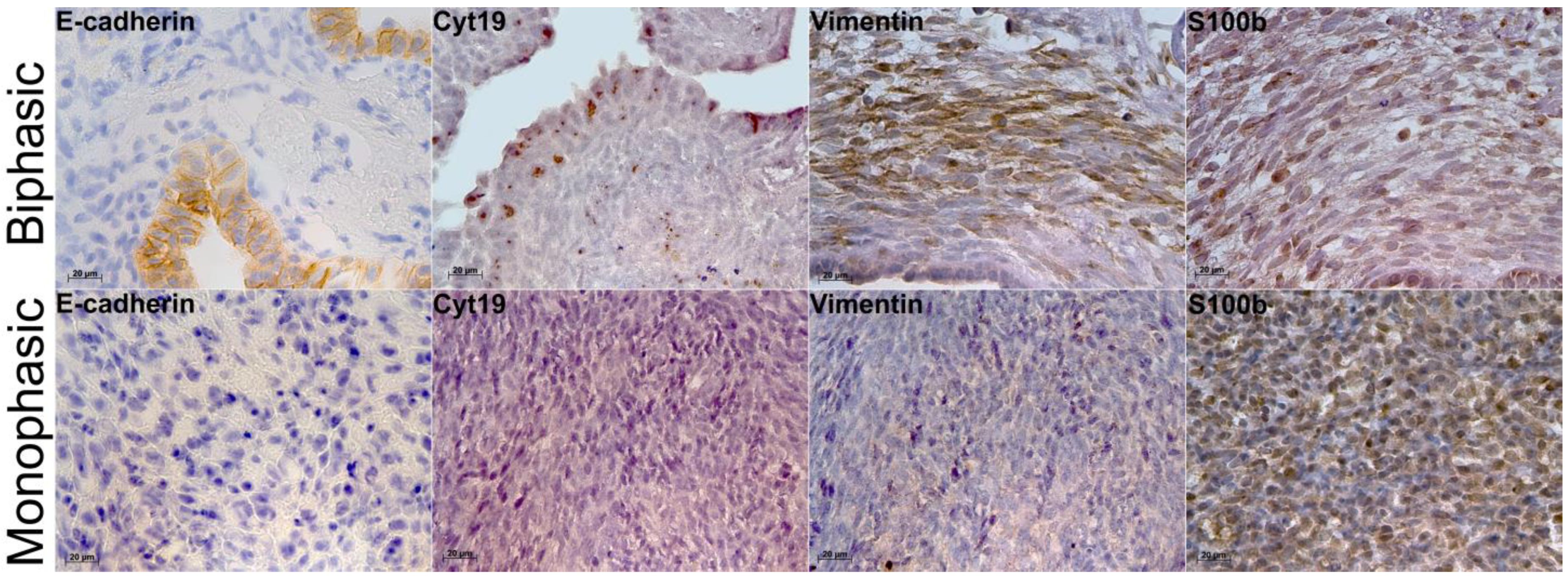2.2. Immunohistochemistry and Molecular Characterization of Biphasic and Monophasic Sarcomas