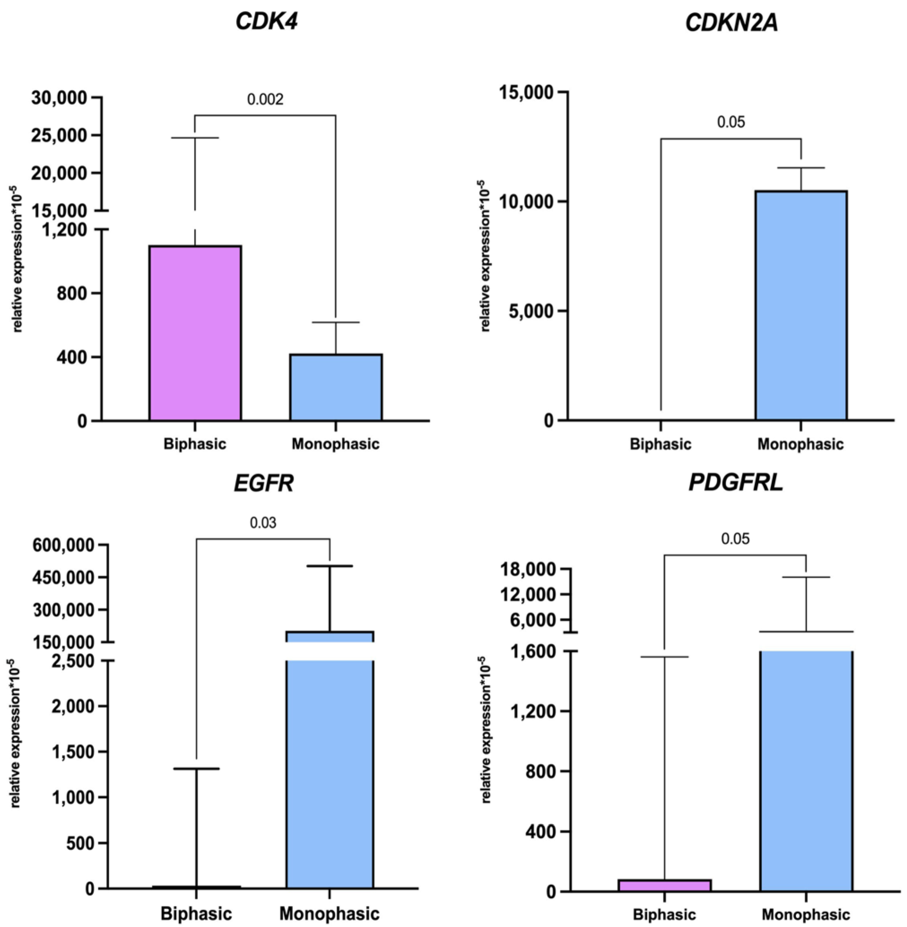 | CDK4 | 1102 (867.8–24,668) | 423.3 (262.4–617.4) | 0.002 |