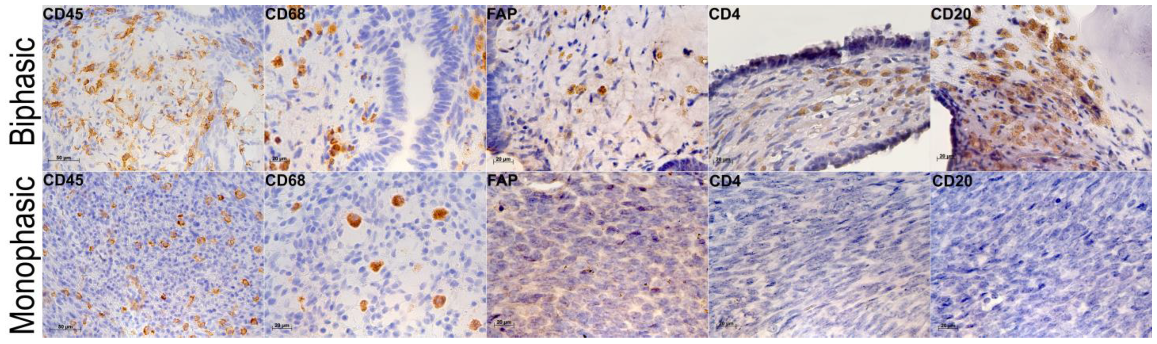 2.3. Tumor Microenvironments in Biphasic and Monophasic Synovial Sarcomas