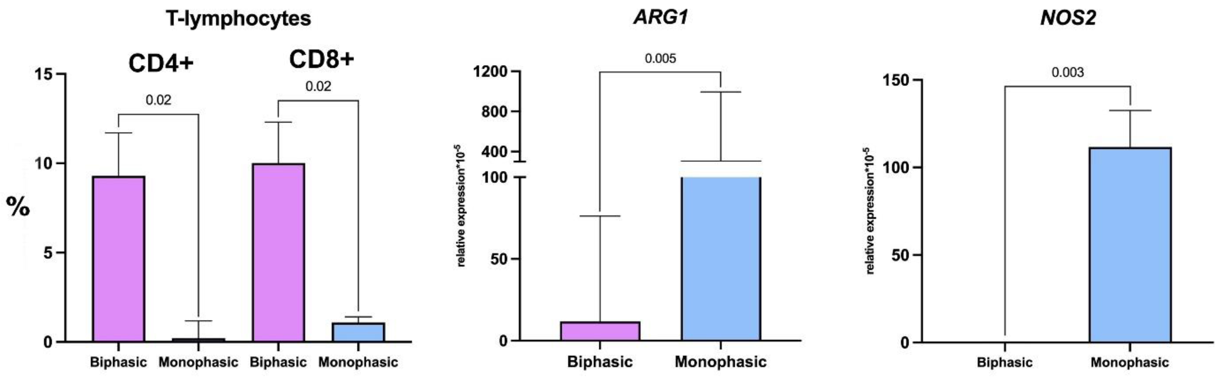 | Cell Type/Marker(s) | Biphasic (n = 2) | Monophasic (n = 7) | p-Value | |