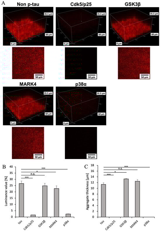 Chicago/Turabian StyleIshibashi, Eisuke, Koki Araya, Kota Nakamura, Keiya Shimamori, Koji Uwai, Masahiro Kuragano, and Kiyotaka Tokuraku. 2025. "Aggregation Characteristics of Tau Phosphorylated by Various Kinases as Observed by Quantum Dot Fluorescence Imaging" International Journal of Molecular Sciences 26, no. 20: 10122. https://doi.org/10.3390/ijms262010122