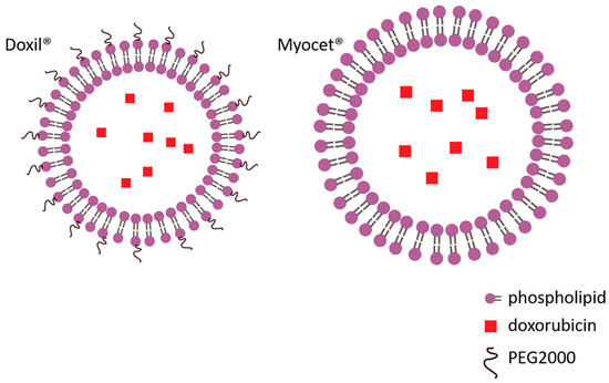 Liposomal formulations of doxorubicin: pegylated (Doxil®) and non-pegylated (Myocet®).