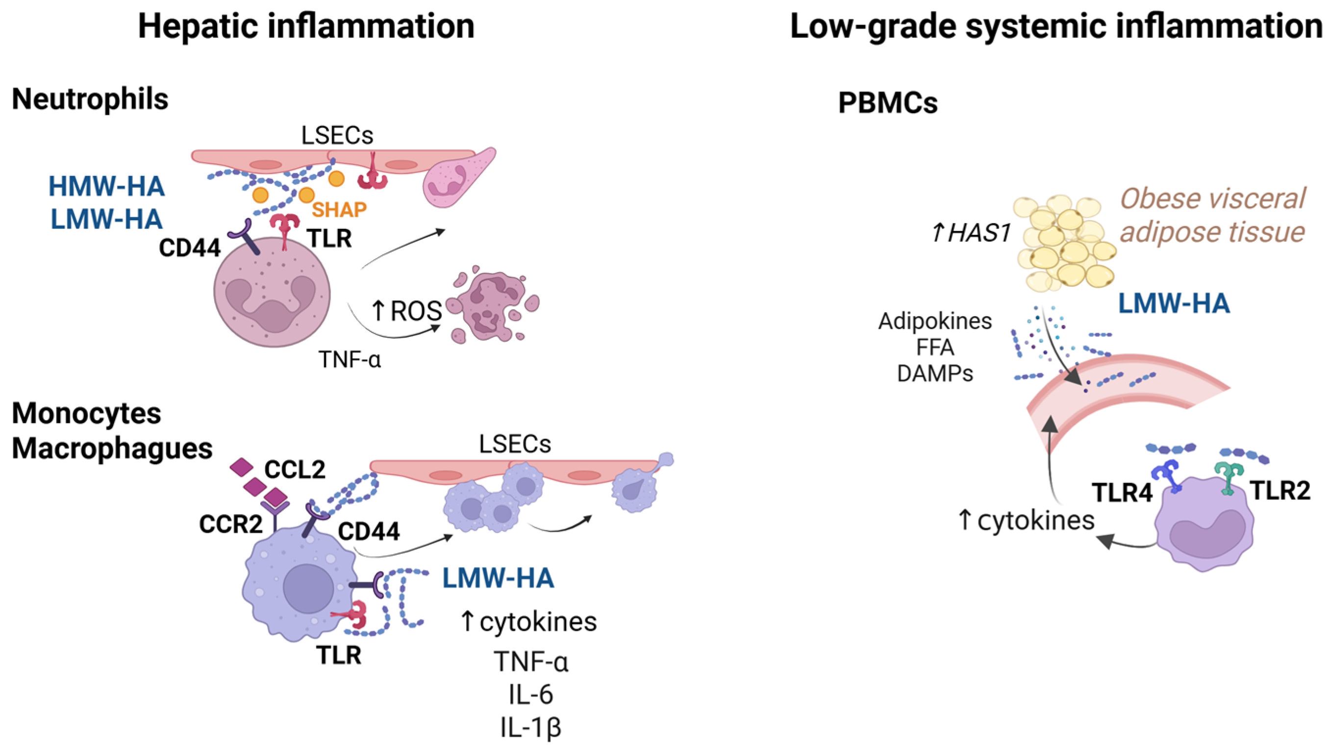 | TLR2 | Macrophages, dendritic cells, Kupffer cells | Recognizes LMW-HA as DAMP, activates NF-κB and cytokine secretion | Functions as an innate immune sensor of ECM damage | [14] |