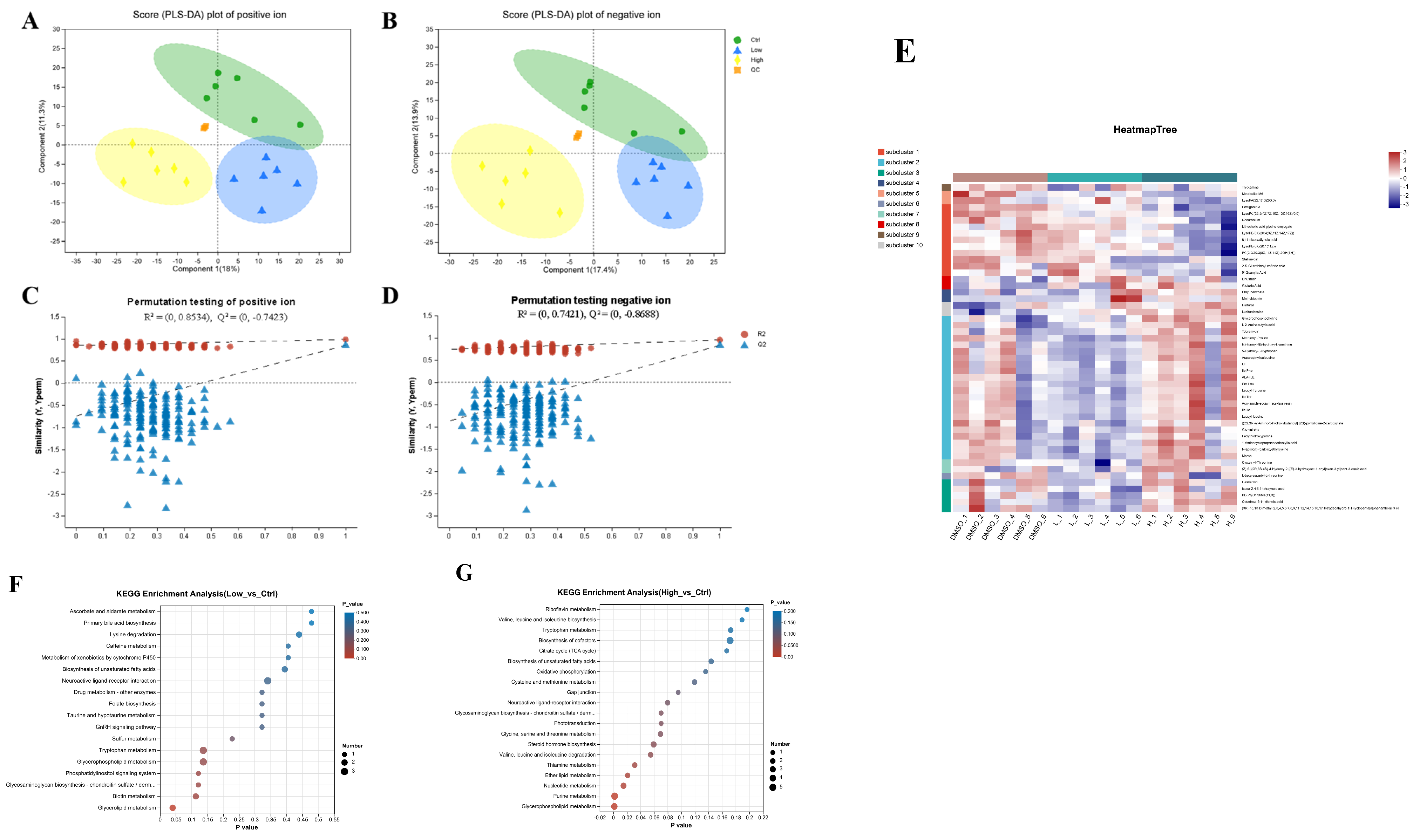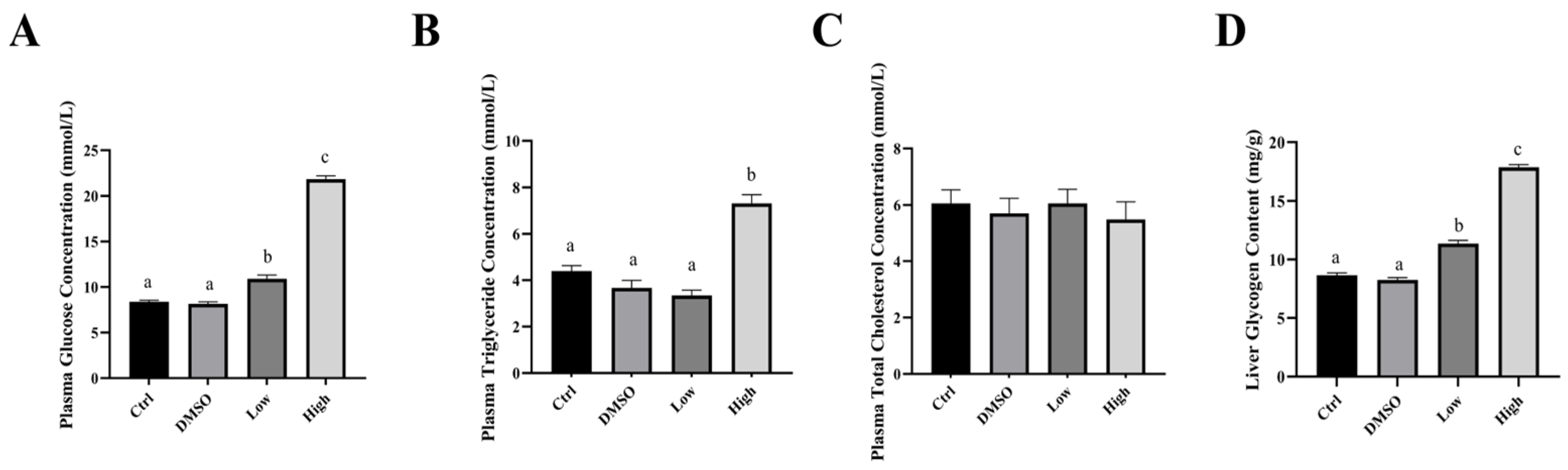 2.2. BDE-47 Affects the Metabolites Involved in Glucose and Lipid Metabolism in the Carp Liver