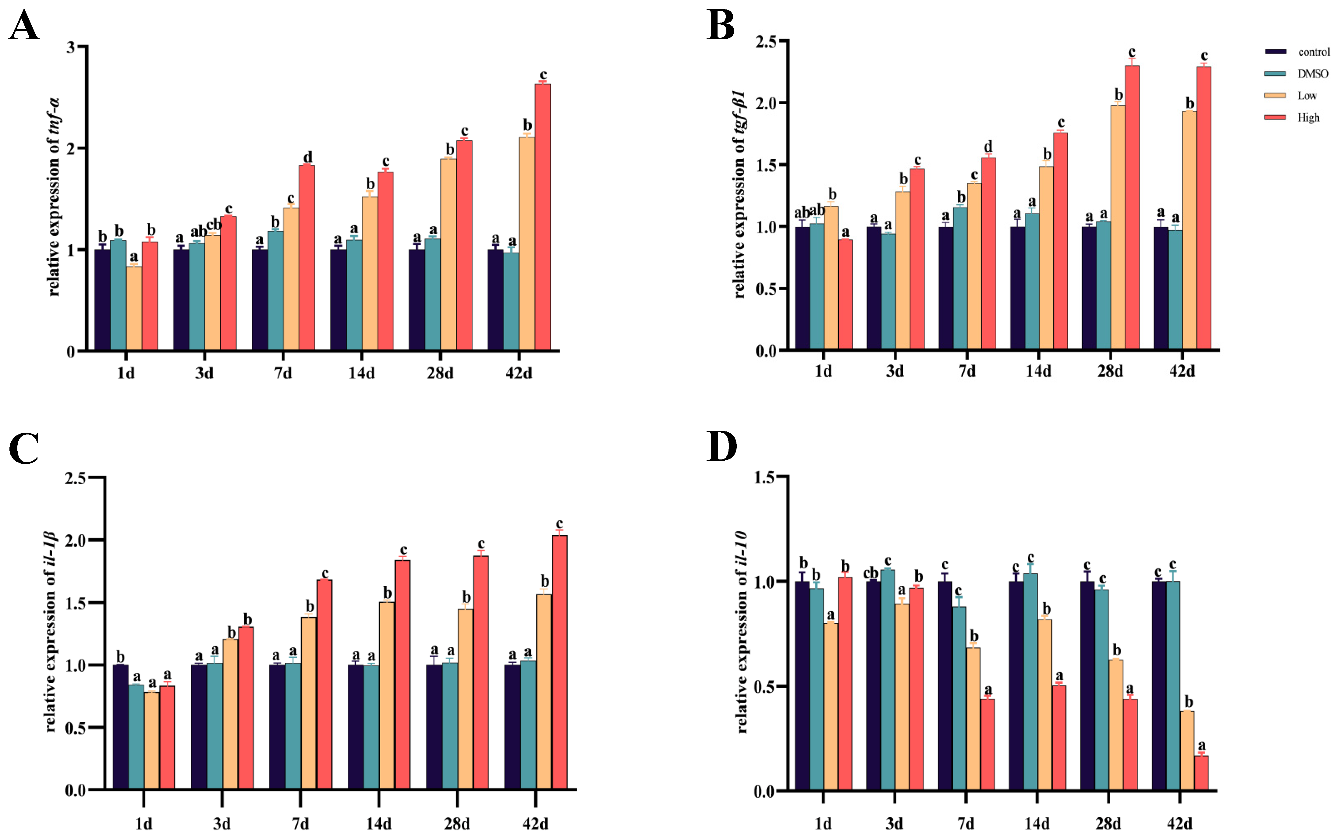 2.4. BDE-47 Induces an Inflammatory Response in the Liver of Carp
