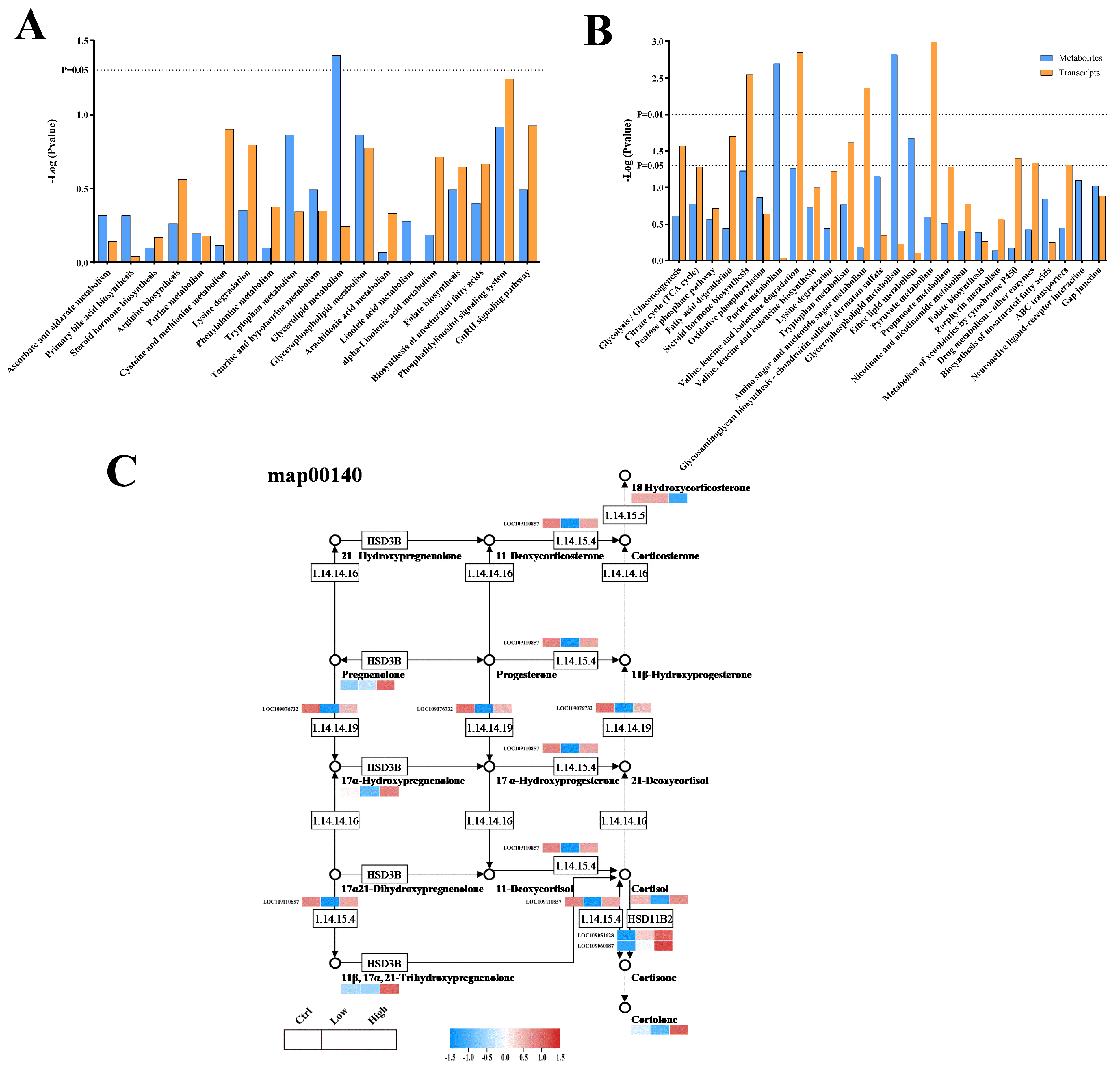 2.5. Transcriptome and Metabolomic Joint Analyses Reveal That the BDE-47 Pathway Induces Lipid Deposition in the Carp Liver