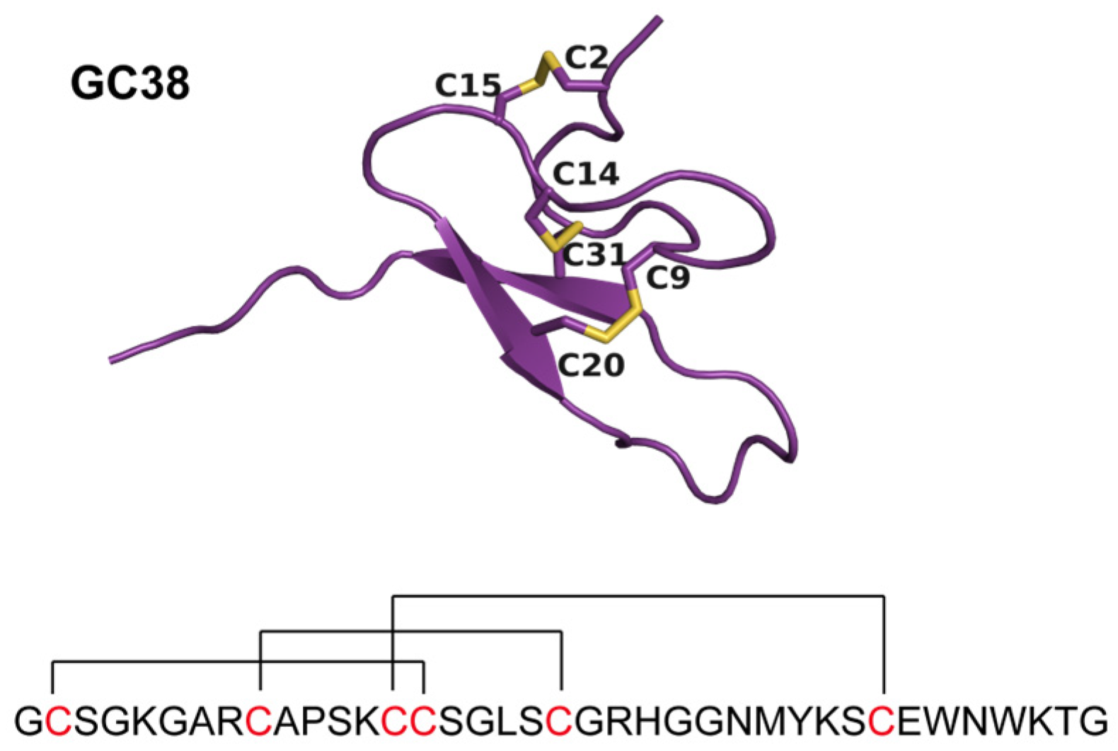 2.1. Identification and Characterization of the ICK Peptide GC38 from Macrothele sp. Venom
