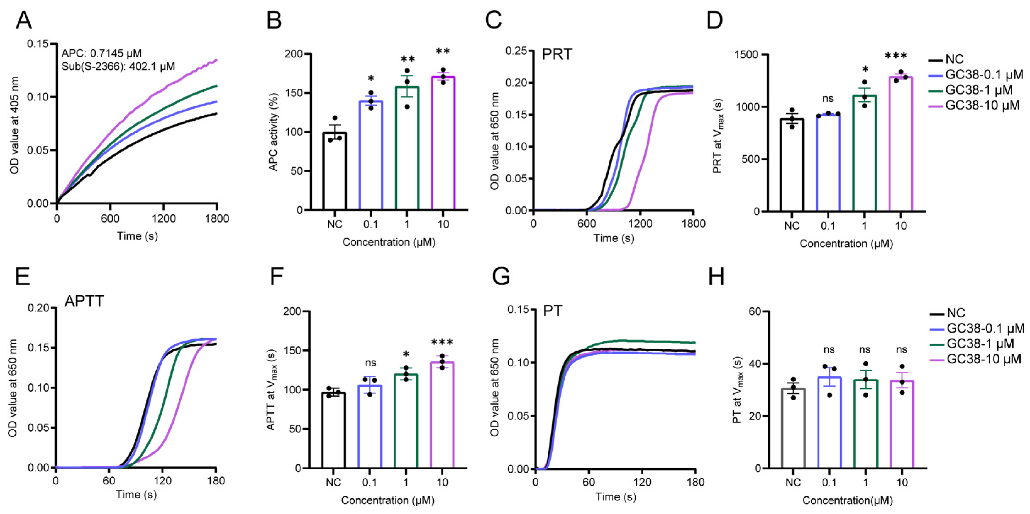 4.3. In Vitro Assays for Evaluating GC38’s Effects on Coagulation