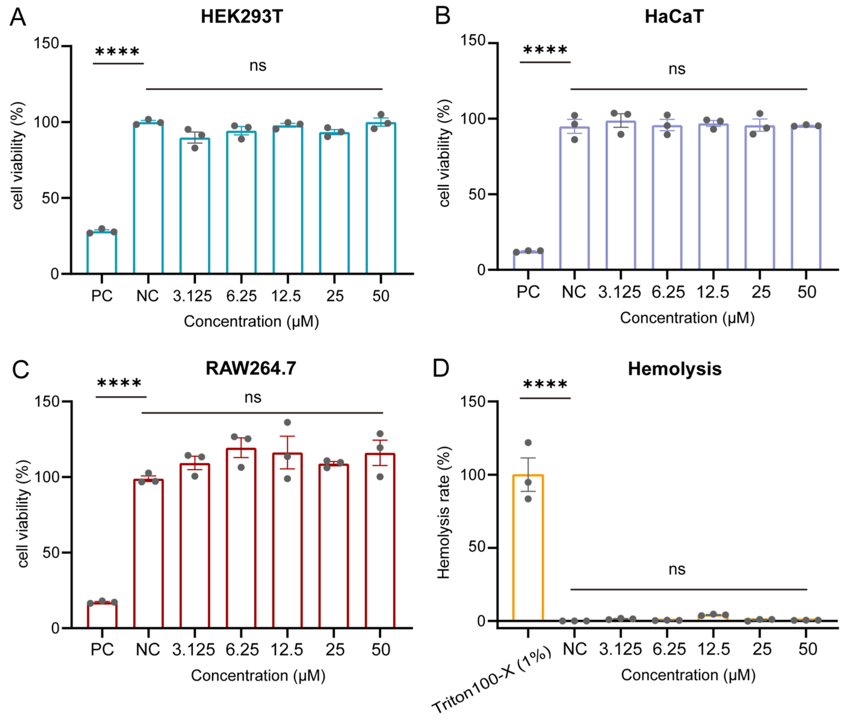 4.5. In Vitro Safety Assessment of GC38: Cytotoxicity and Hemolysis