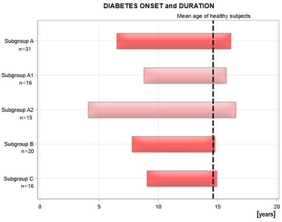The subgroups (A1, B, C) studied were similar in terms of BMI, age, disease duration, age of onset, and the amount of insulin units administered per kilogram of body weight. The number of mild and severe hypoglycemic episodes, as well as the percentage of pump use in relation to disease duration and the number of autoimmune comorbidities (celiac disease and autoimmune thyroiditis) were not different.