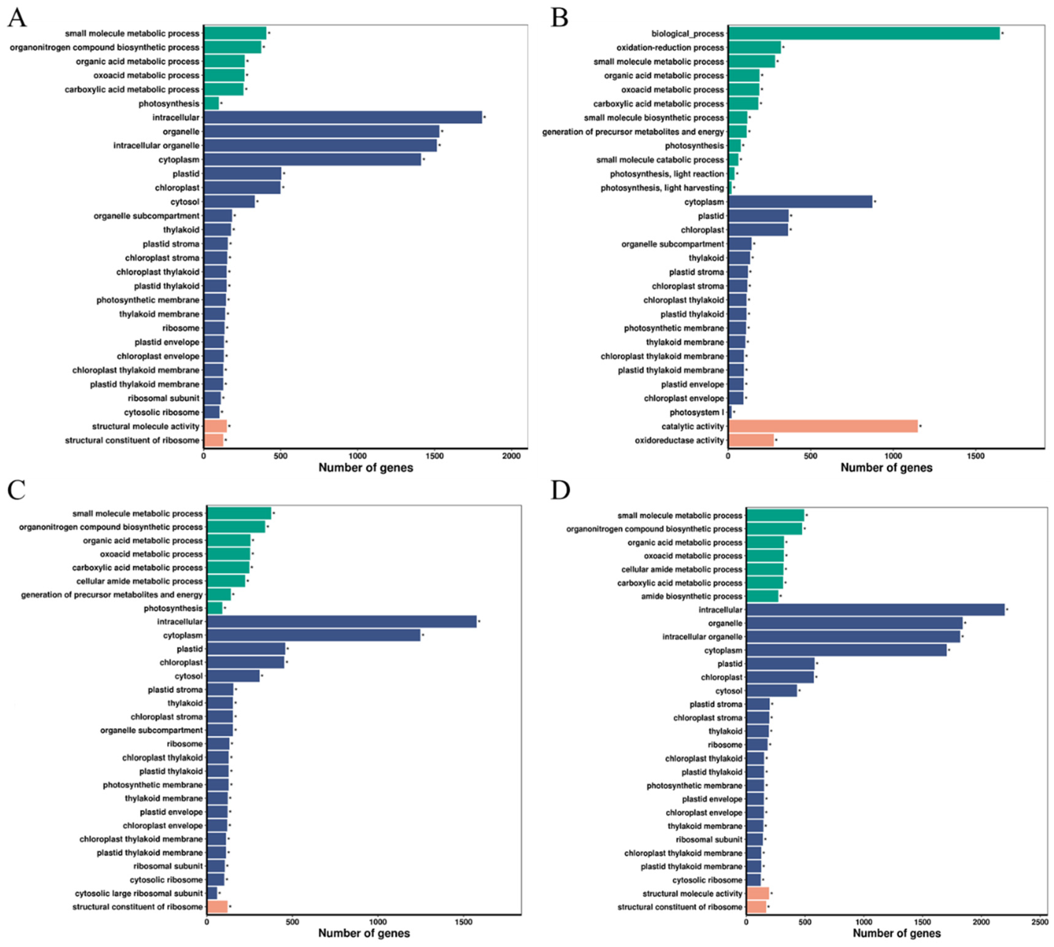 2.4. Functional Classification via Gene Ontology (GO) Analysis