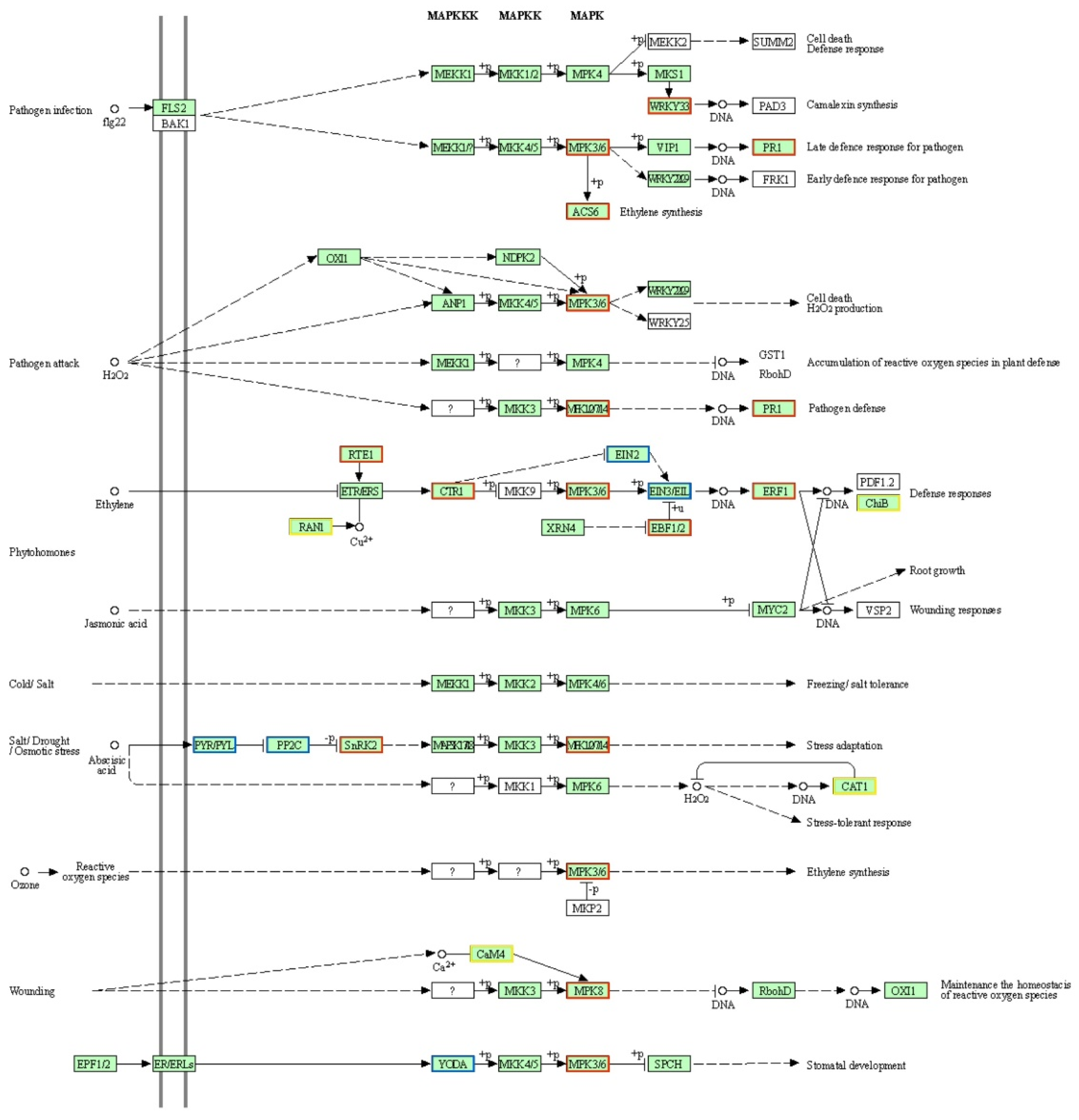 - Movahedi, A.; Hwarari, D.; Dzinyela, R.; Ni, S.; Yang, L. A close-up of regulatory networks and signaling pathways of MKK5 in biotic and abiotic stresses. Crit. Rev. Biotechnol. 2025, 45, 473–490. [Google Scholar] [CrossRef]