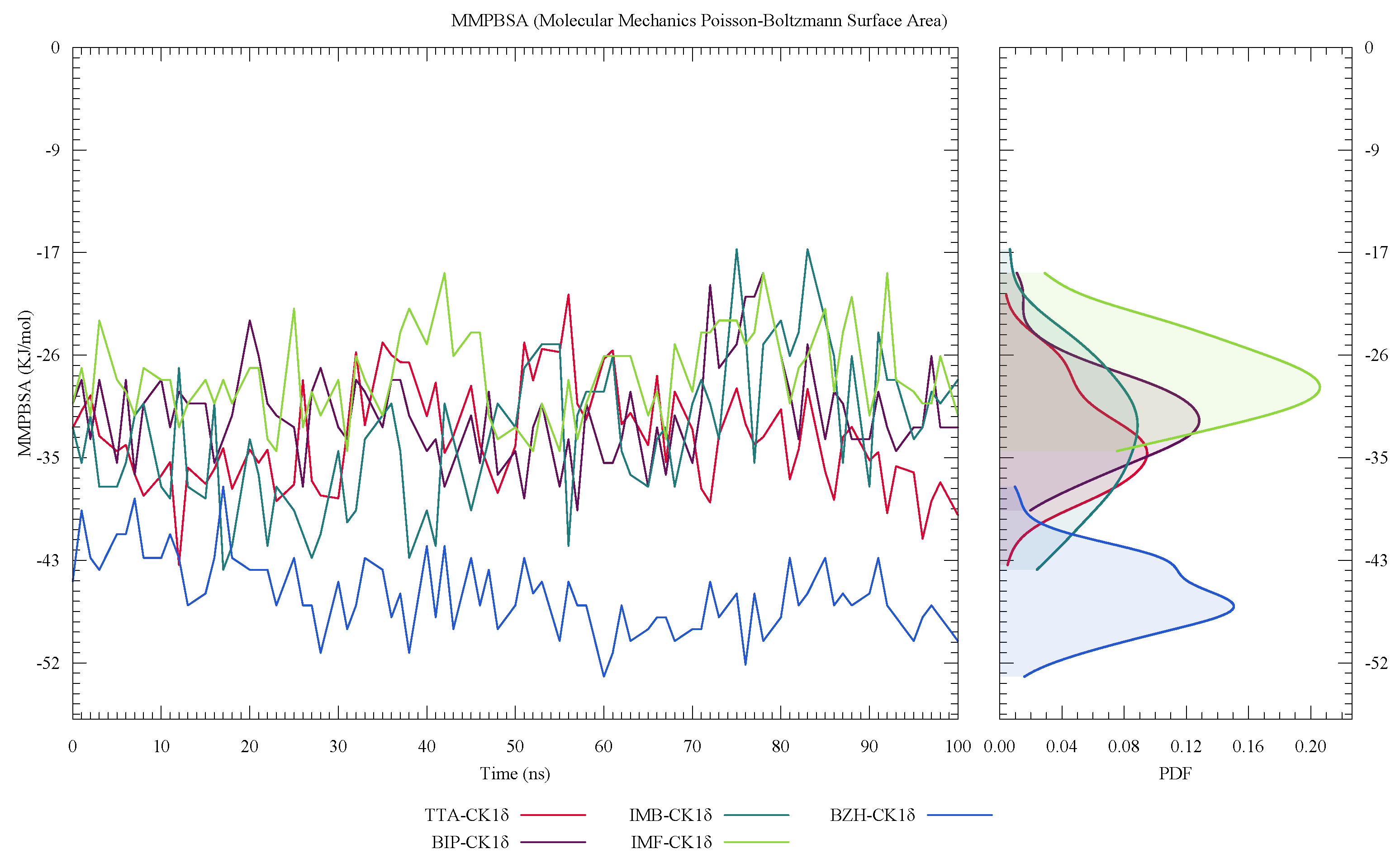- Kumari, R.; Kumar, R.; Lynn, A. g_mmpbsa-A GROMACS Tool for High-Throughput MM-PBSA Calculations. J. Chem. Inf. Model. 2014, 54, 1951–1962. [Google Scholar] [CrossRef]