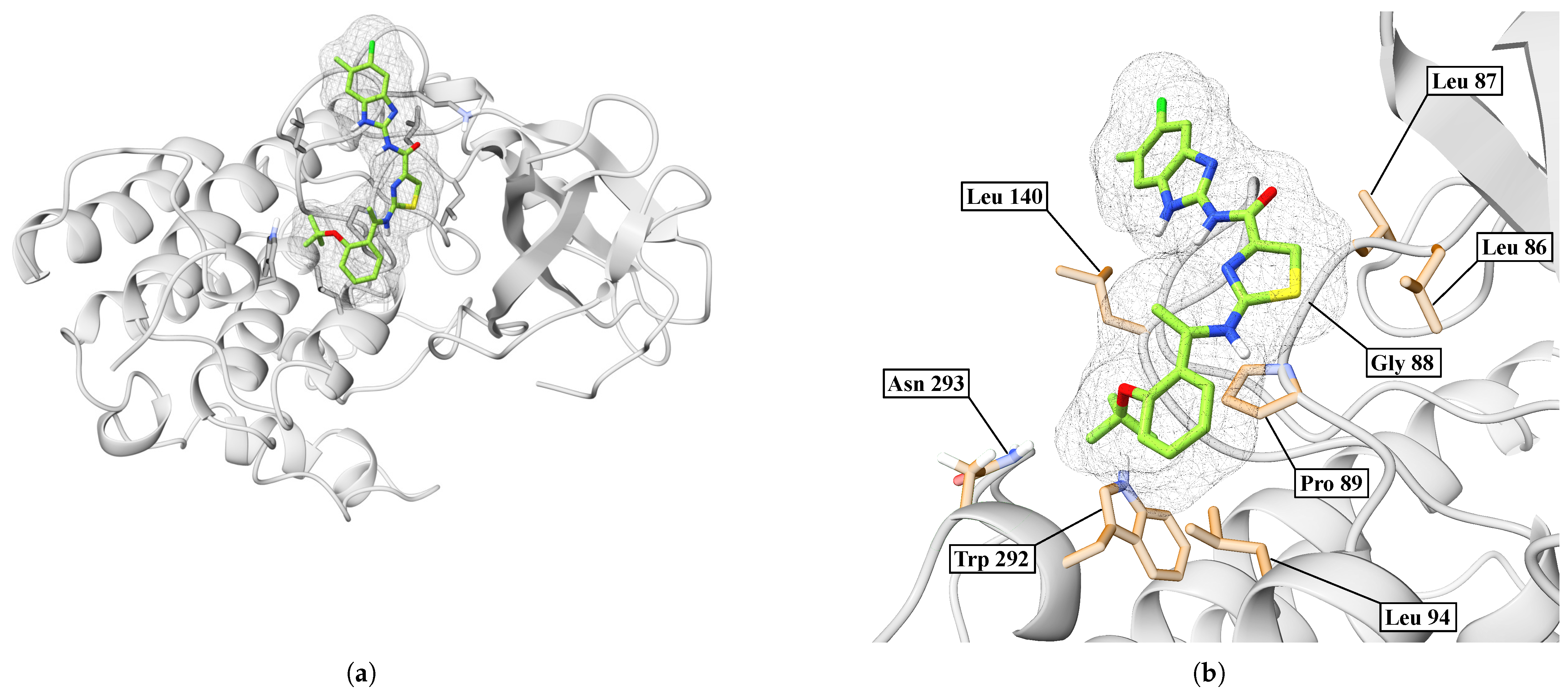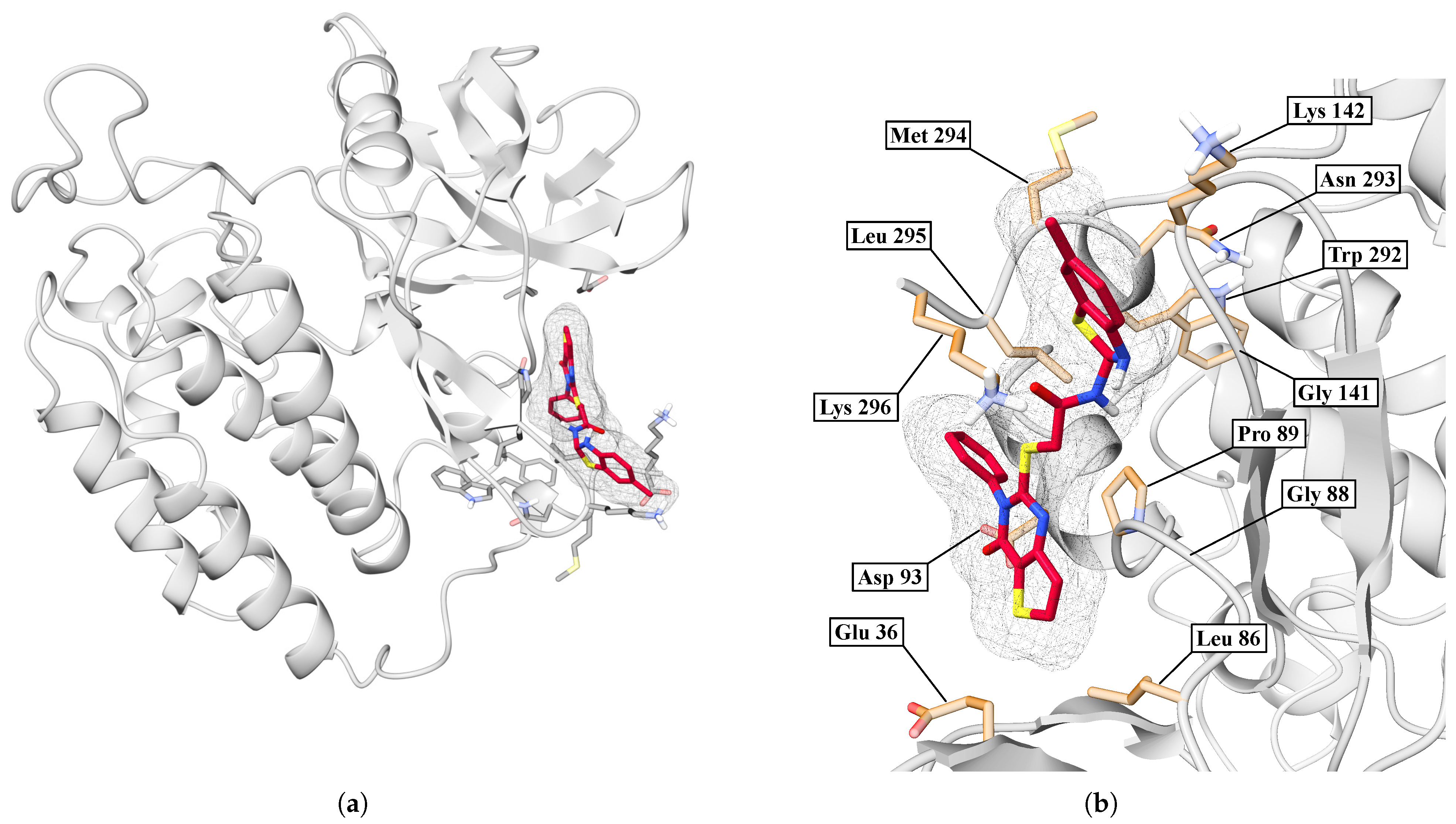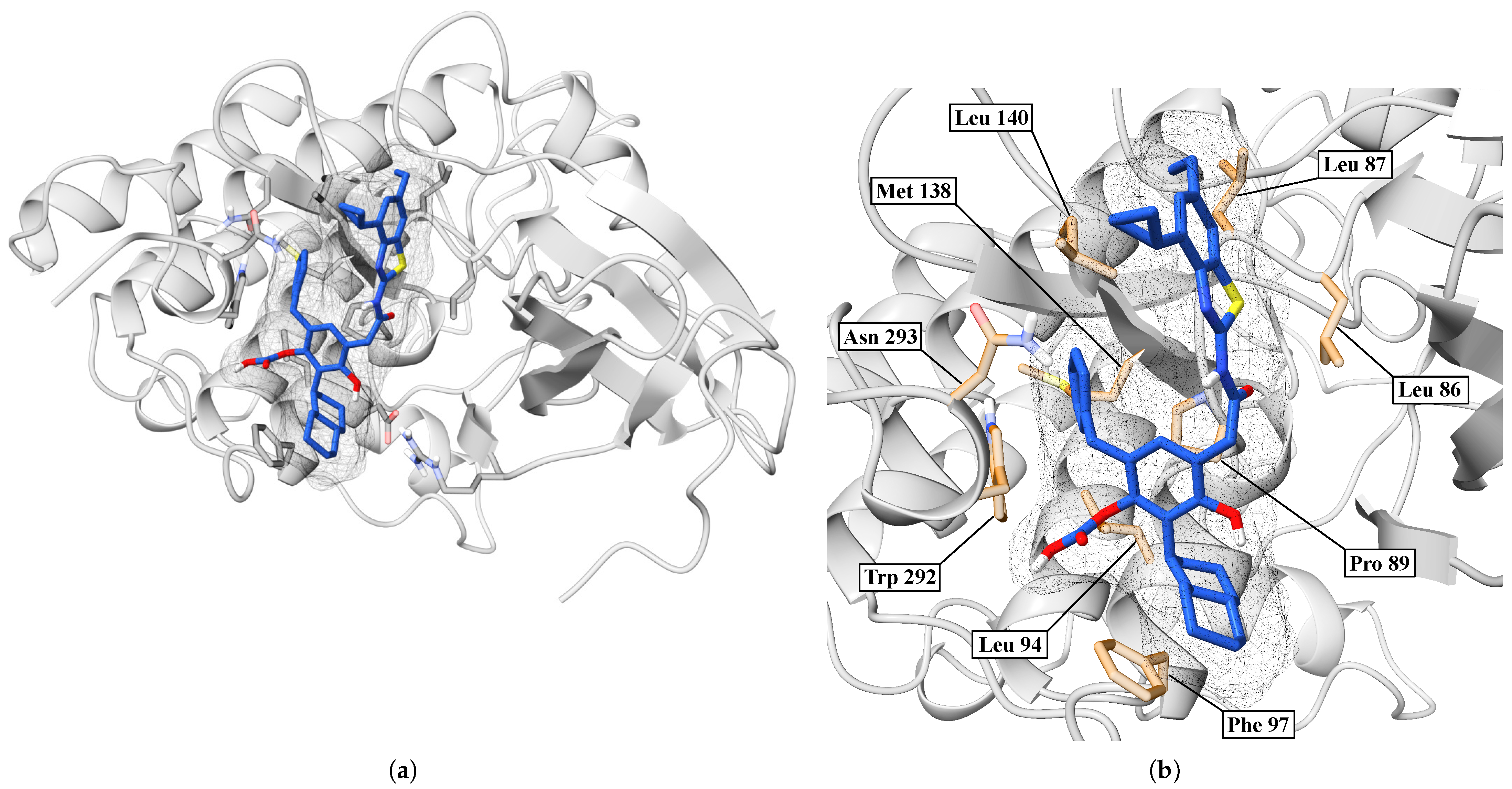 - Morris, G.M.; Huey, R.; Lindstrom, W.; Sanner, M.F.; Belew, R.K.; Goodsell, D.S.; Olson, A.J. AutoDock4 and AutoDockTools4: Automated docking with selective receptor flexibility. J. Comput. Chem. 2009, 30, 2785–2791. [Google Scholar] [CrossRef]