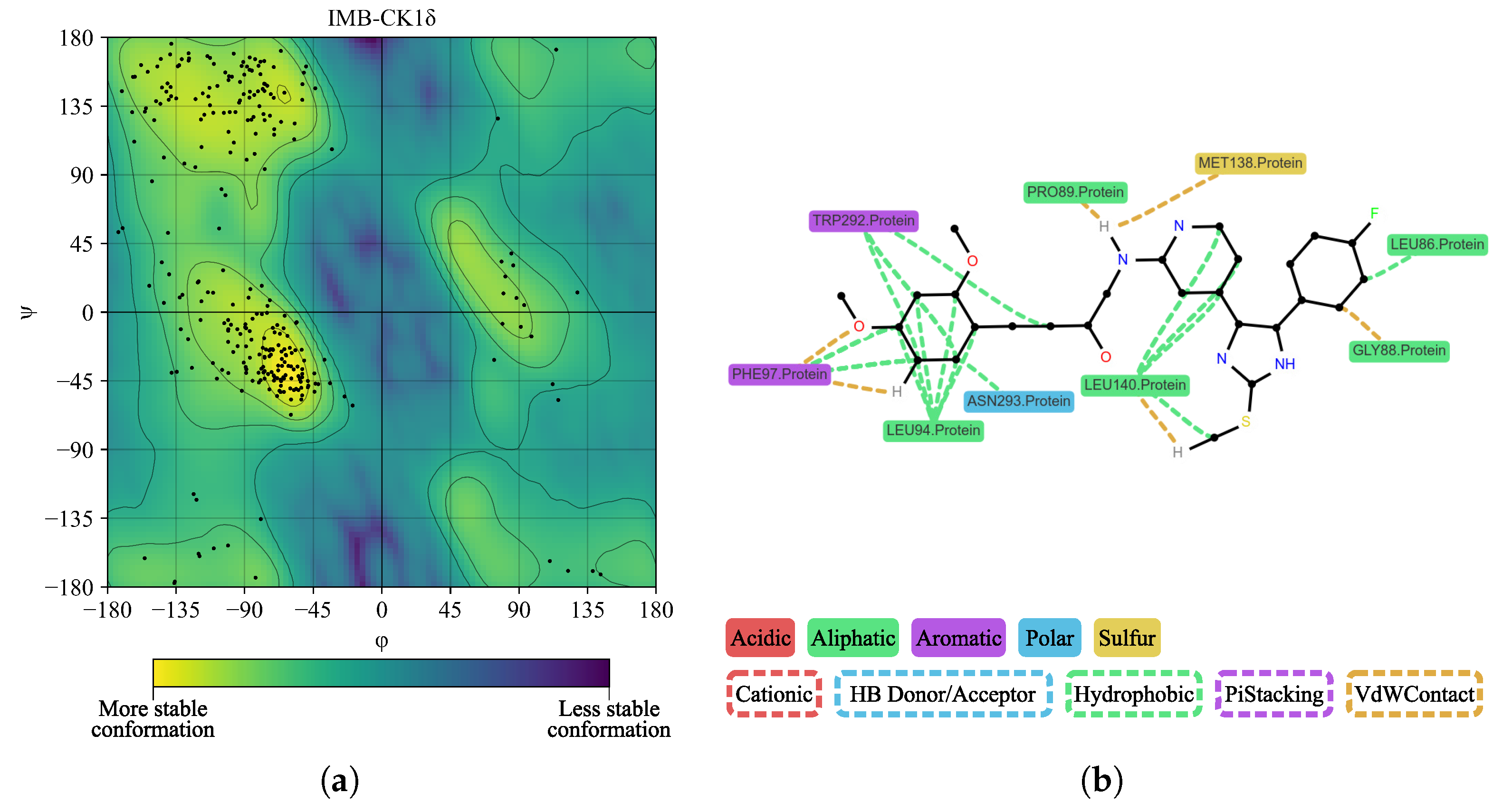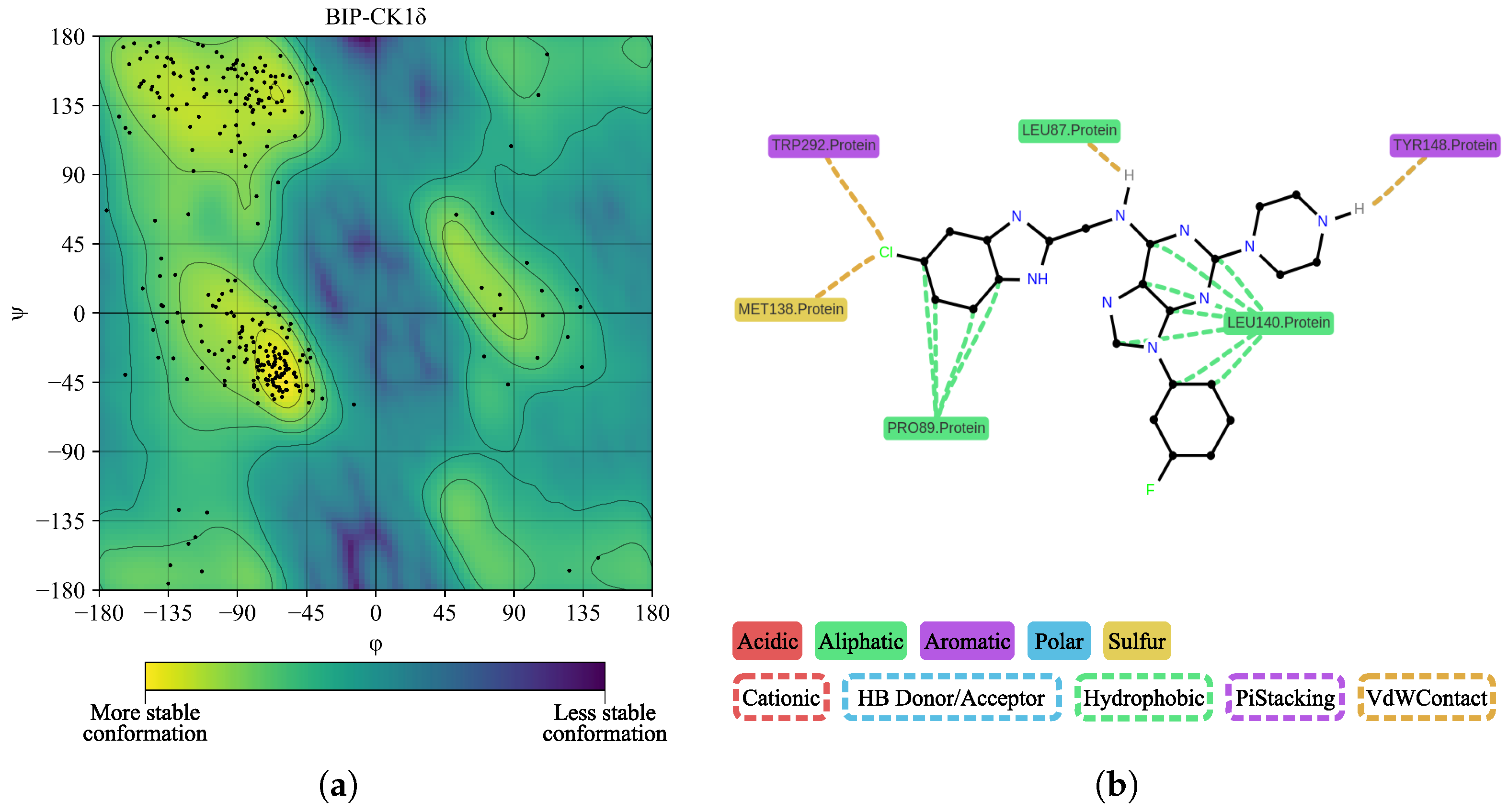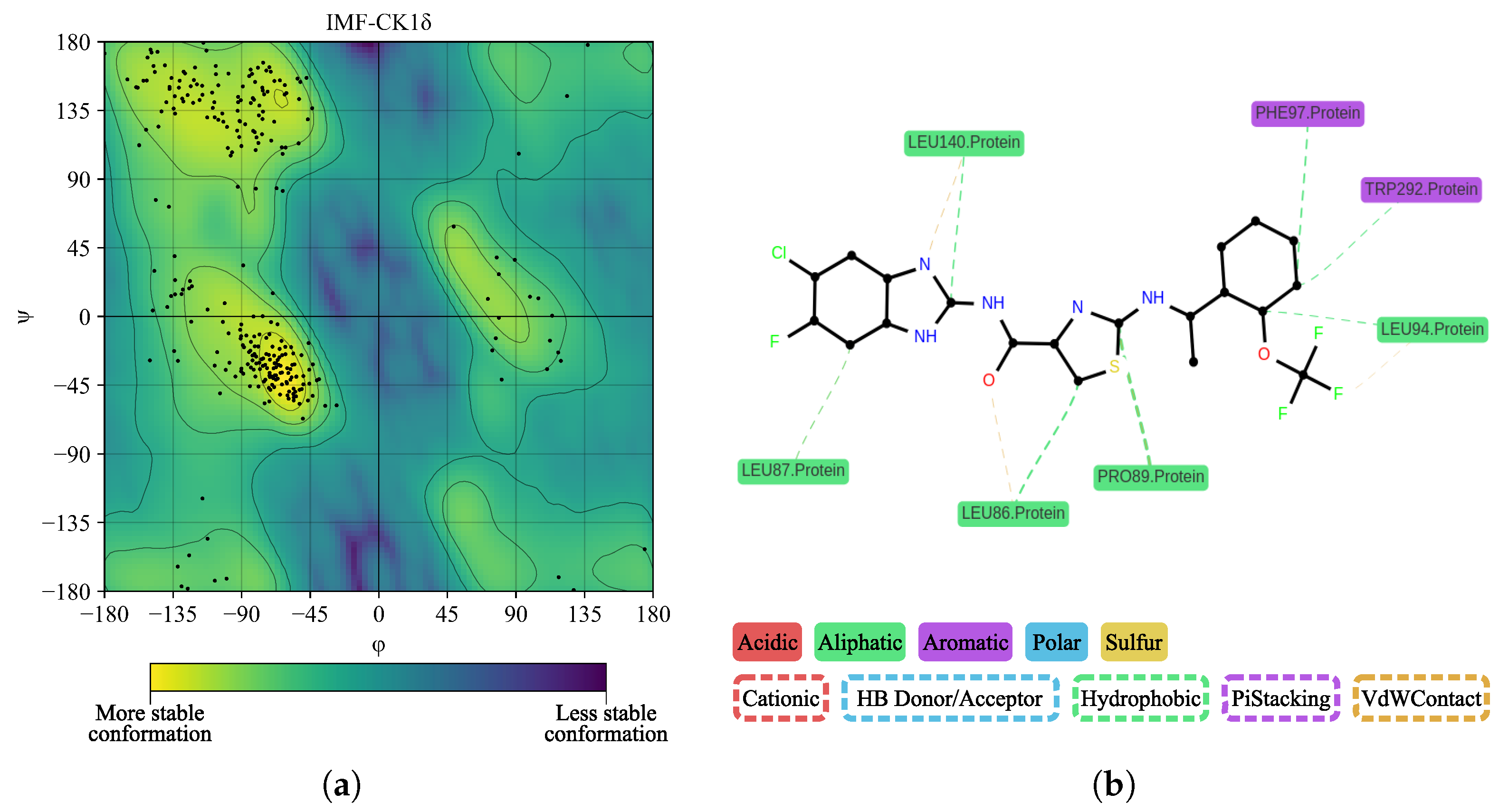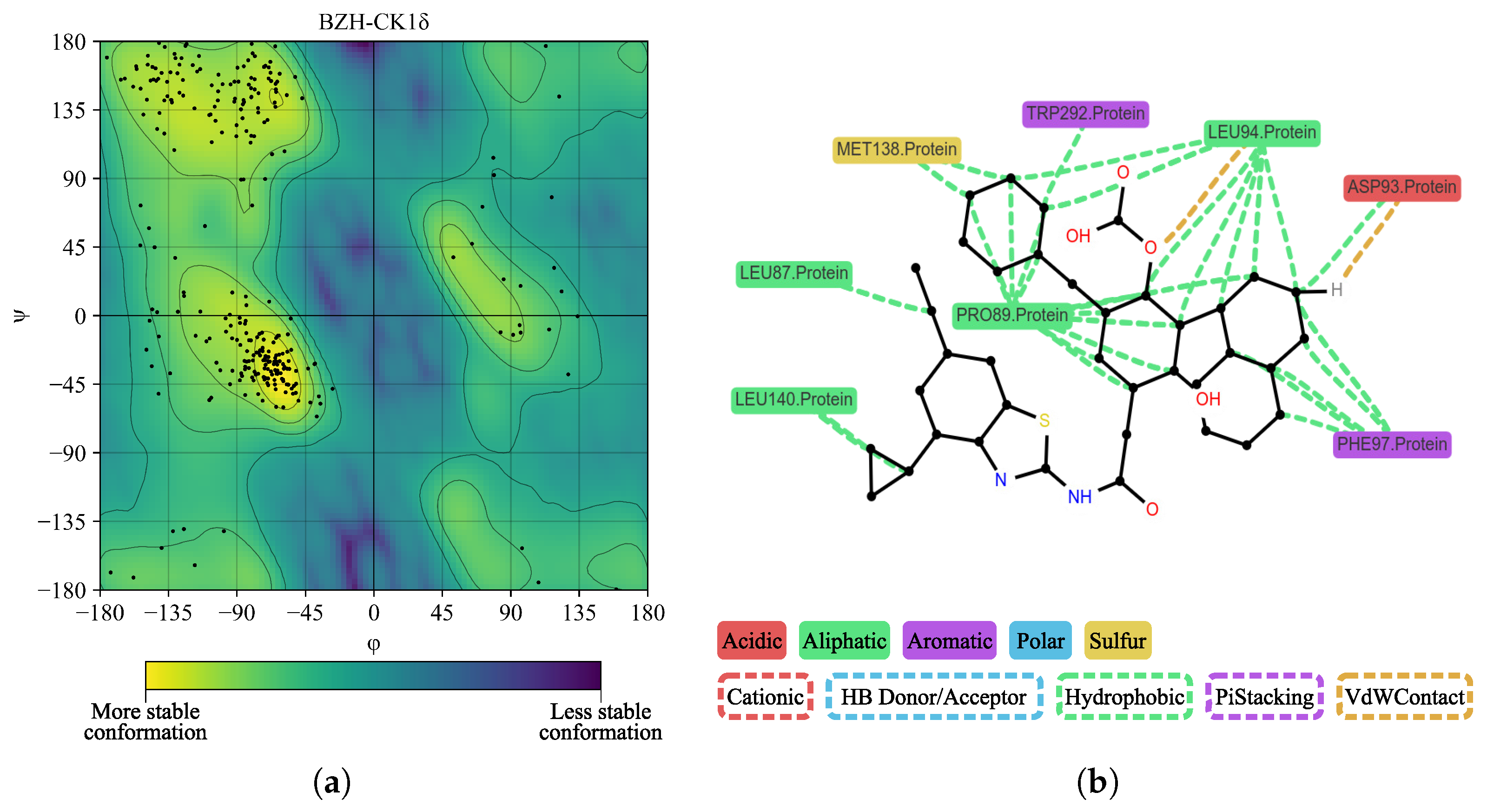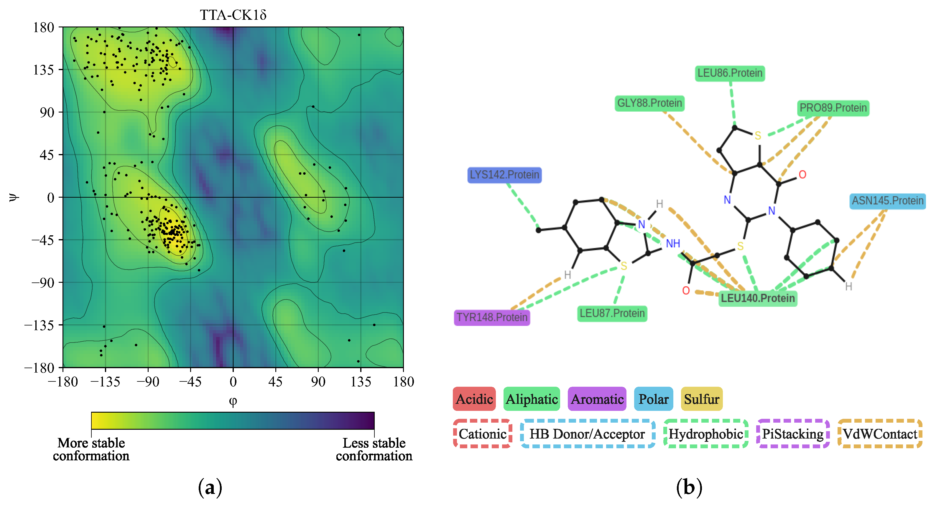 - Chaikuad, A.; Arrowsmith, C.; Edwards, A.; Bountra, C.; Roush, W.; Knapp, S. Crystal Structure of Casein Kinase 1 Delta (CK1 Delta) Complexed with SR3029 Inhibitor: 6rcg. 2019. Available online: https://www.rcsb.org/structure/6RCG (accessed on 15 October 2025).