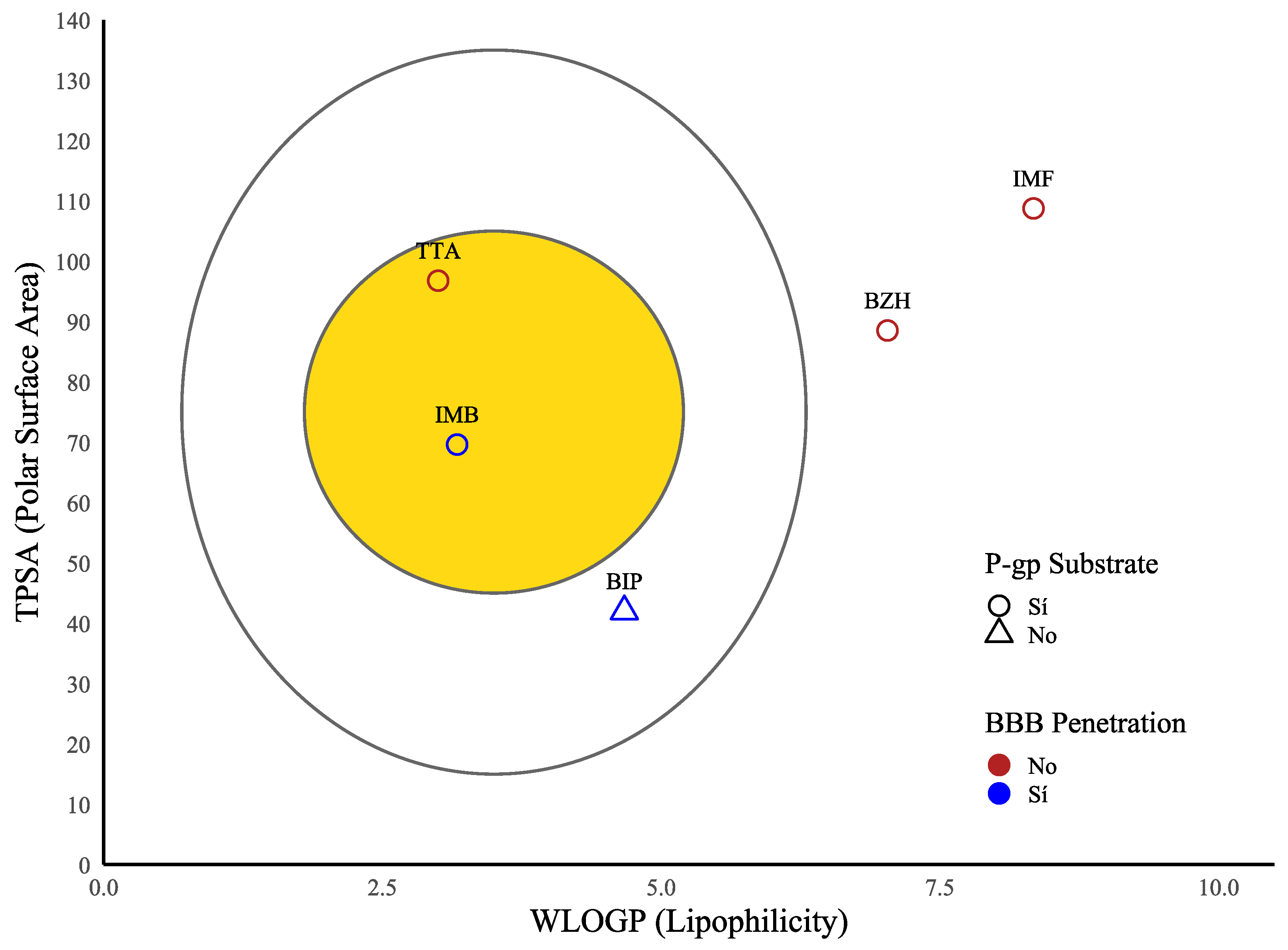 Ligand | MW | HBD | HBA | LogP | TPSA | RB | Lipinski | Veber | HIA | BBB |
