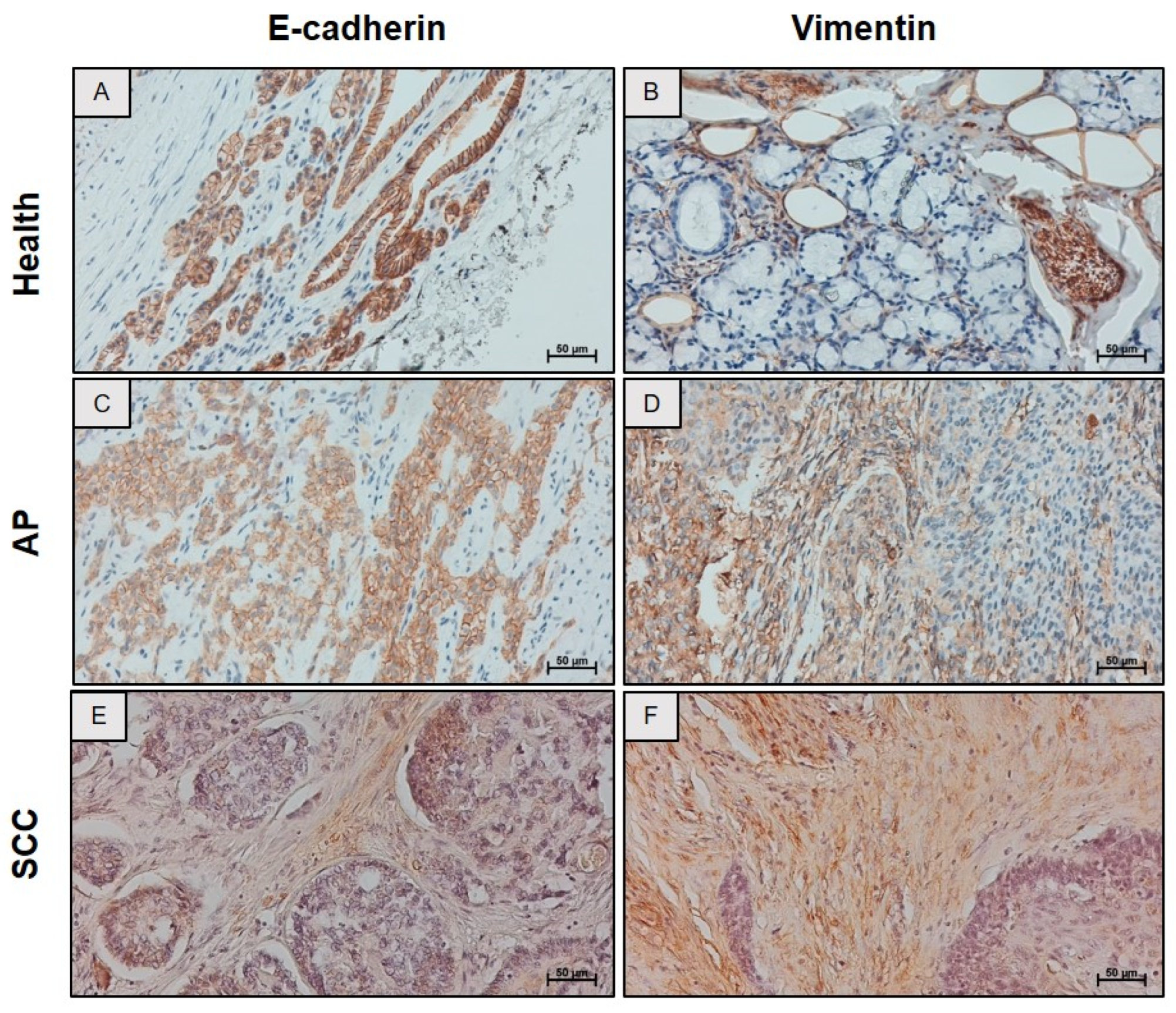 2.2. Progressive Alteration in the Expression of Epithelial and Mesenchymal Markers
