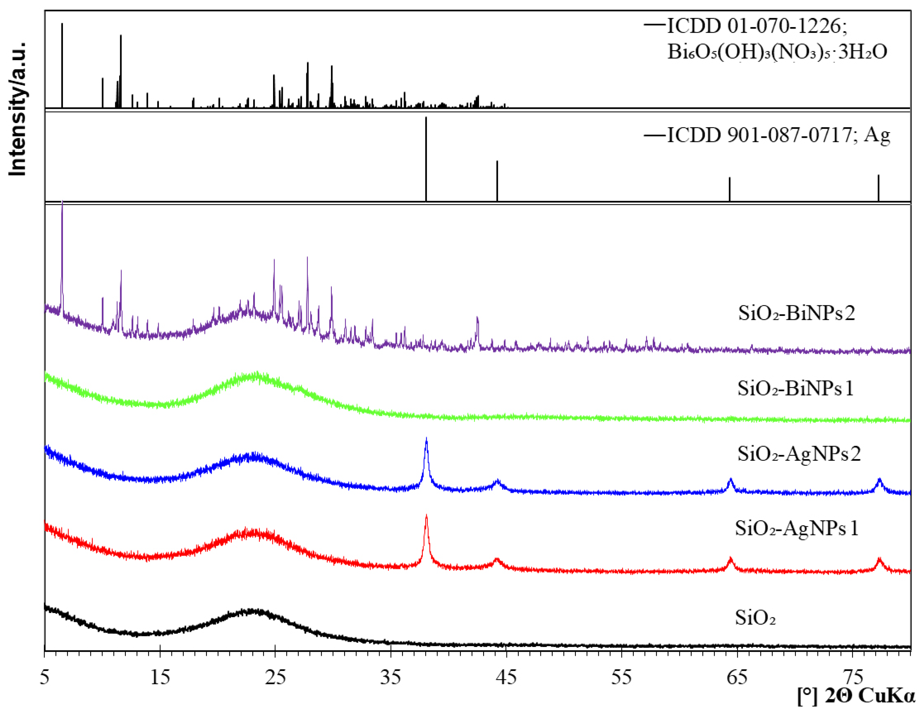 | SiO2-BiNPs1 | Bi | Silica spheres with bismuth nanoparticles, no APTES | 3.0 | 2.38 |